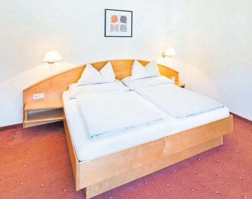 Zimmer: Diehellen Zimmer sind sehr modernausgestattet mitWalk-inDusche, WC,Föhn, Minibar, TV u.v.m.. DieFamilienzimmer (55m2) bieten einDoppelbett,2Schlafzimmermit Verbindungstür,2 Bäder, 2LCD -SatTV,2Balkone