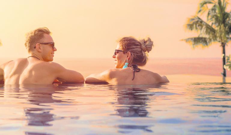 •Infinity Pool undIndoor Pool mitbequemenRelaxinseln und -Kojen, Whirlpool,Riesenrutsche