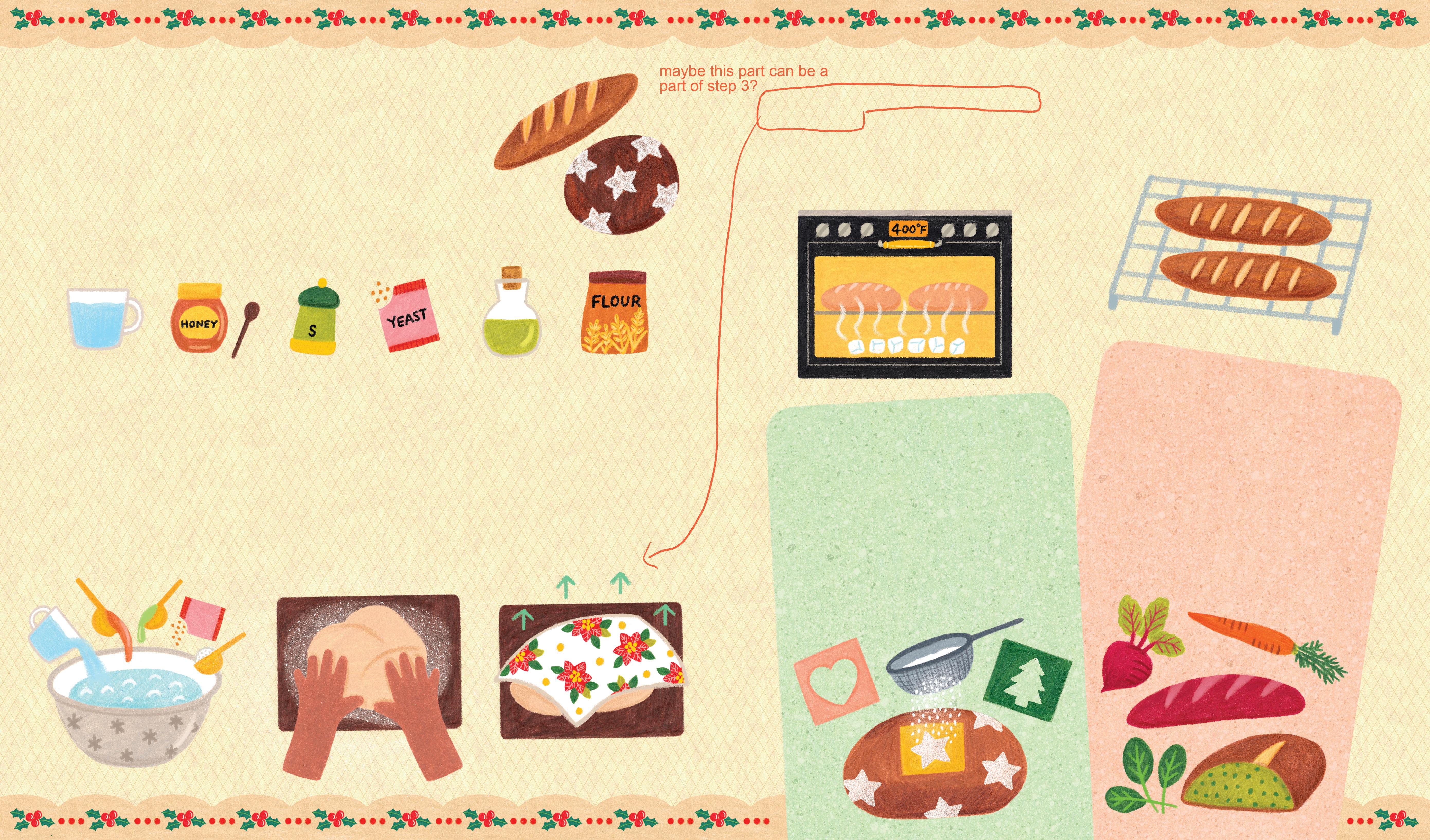 Another fun way to customize our loaves is to decorate the outside with a stencil. Bread stencils are small designs or patterns cut into a piece of food-safe material. We place the stencil on top of our loaf and sprinkle four through a fne mesh sieve over the stencil. When we remove the stencil material, our design will be left on the top of the loaf!