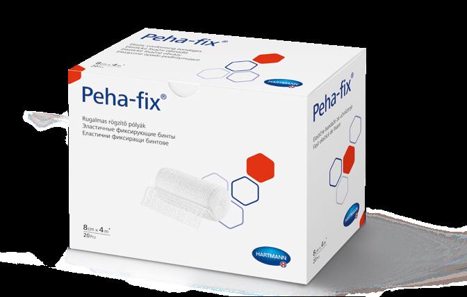 Peha-fix® elastické fixační obinadlo zaručuje bezpečné upevnění, a to i na oblých a kónických částech těla. Je příjemné a prodyšné. Fixuje se cívkovou náplastí z řady Omni, např. Omnifilm®, který je lehce v rukou dělitelný a spolehlivě drží. Další variantou je kohezivní obinadlo Peha-haft®