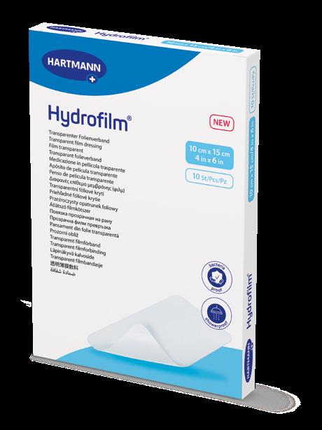 Hydrofilm® je průhledná samolepicí krycí fólie vyrobená z polopropustné, vodotěsné polyuretanové fólie, kterou je možné perfektně použít k fixaci krytí na rány, například HydroClean®