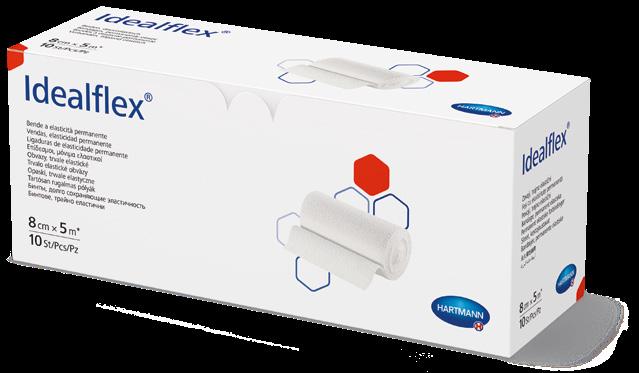 Doporučujeme kombinovat HydroTerapii s Idelaflex® Krátkotažné kompresivní obinadlo Idelaflex® je charakteristické nízkou tažností – 80 %, způsobuje tuhou kompresi – vysokým pracovním a nízkým klidovým tahem, takže může být používáno při odpočinku a přes noc.