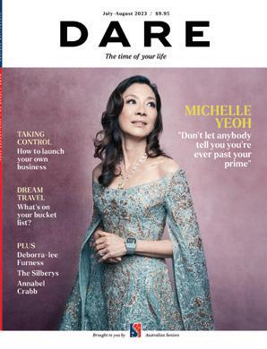 TAKING CONTROL How to launch your own business DREAM TRAVEL What’s on your bucket list? PLUS Deborra-lee Furness The Silberys Annabel Crabb July-August 2023 / $ 9.9 5 The time of your life AUSTRALIAN SENIORS DARE / ISSUE 20 / JULY-AUGUST 2023 Brought to you by Australian Seniors