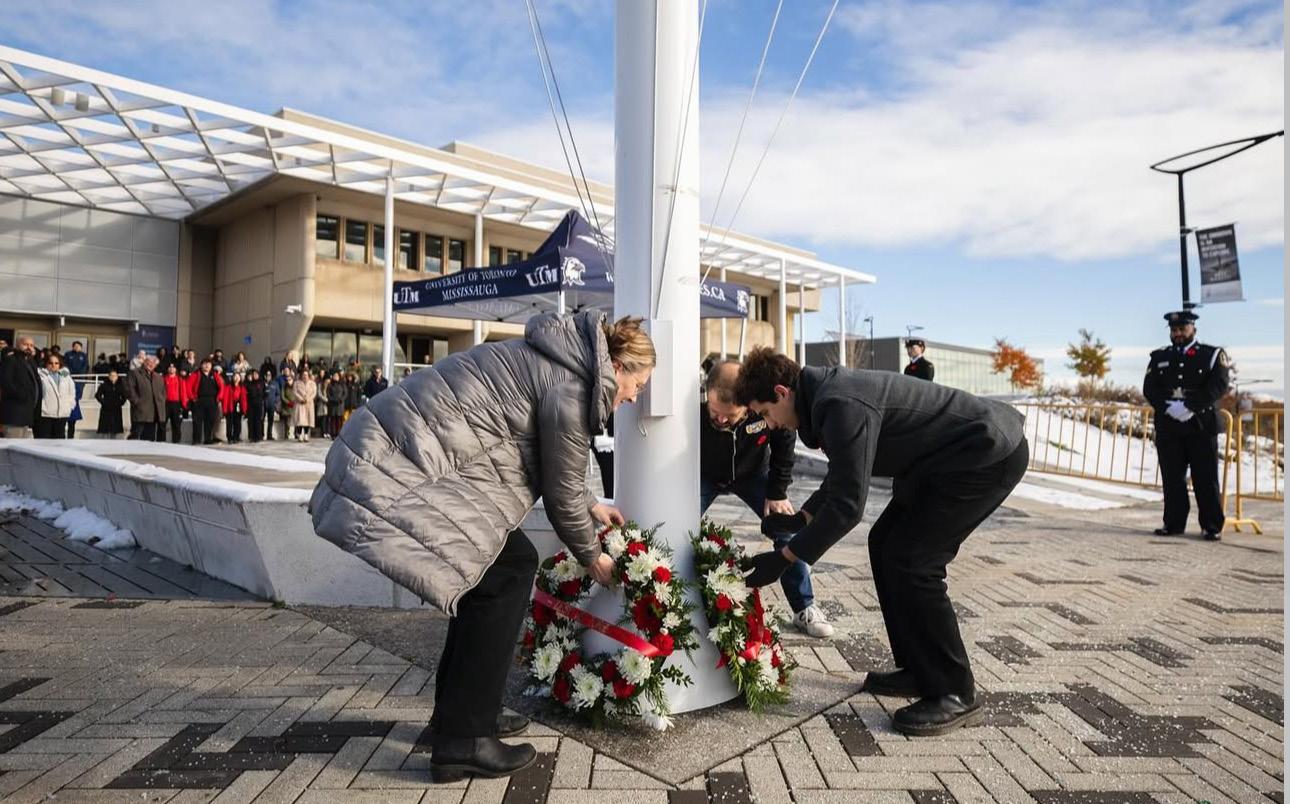UTM’s ceremony took place in front of the William G. Davis Building and featured wreath-laying, a moment of silence, and heartfelt messages of peace and remembrance.