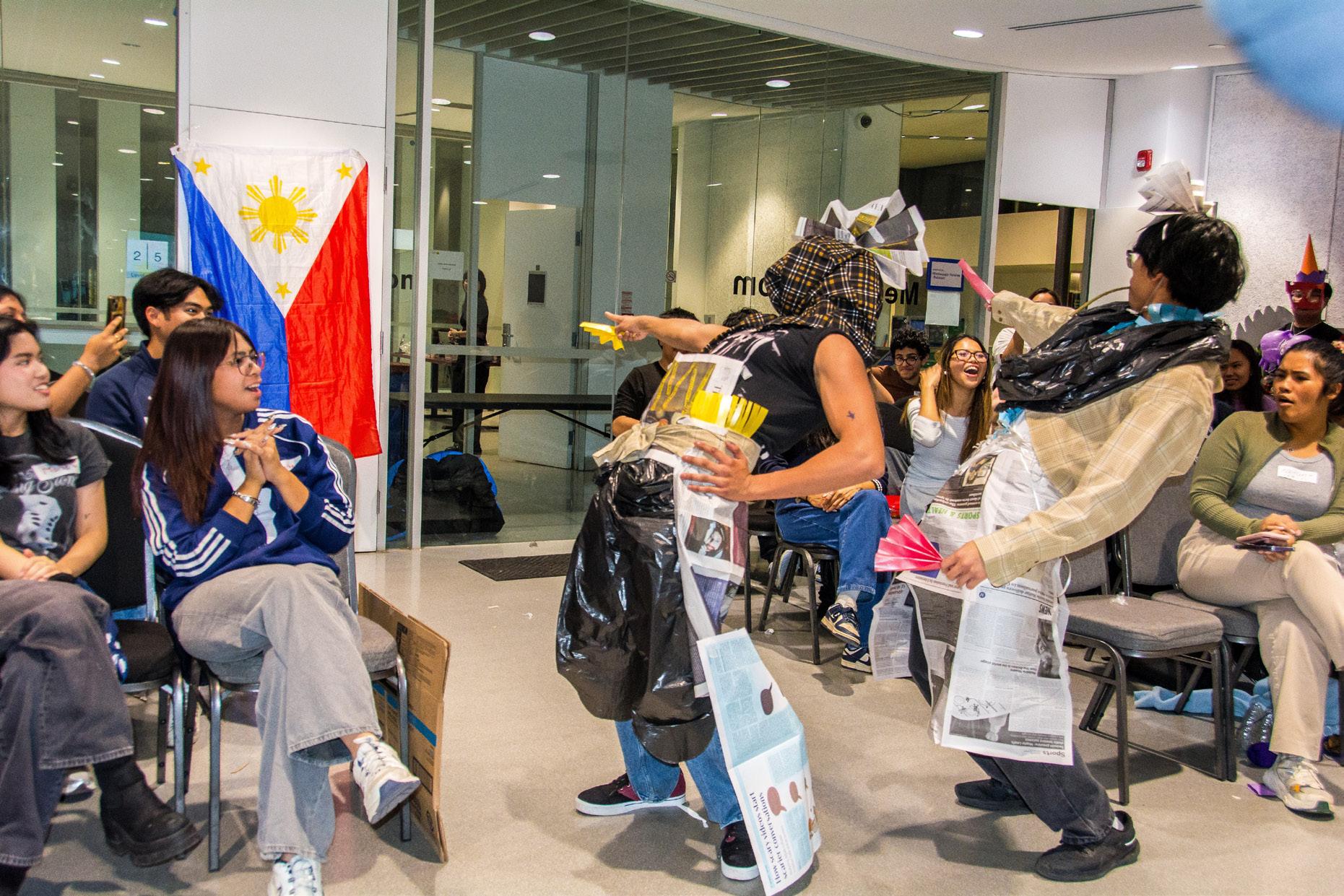 With the room sufficiently excited, the hosts calmed everyone down with a brief presentation about the history of pageantry in the Philippines. Presenters highlighted that the Philippines’ current culture of pageants originated from American colonial occupation following the Philippine Revolution of 1898, which drew a collective groan from the audience. Despite its origins in imperialism, the presenters noted that watching and participating in pageants have become beloved national pastimes as well as vehicles for feminism and gender expression.