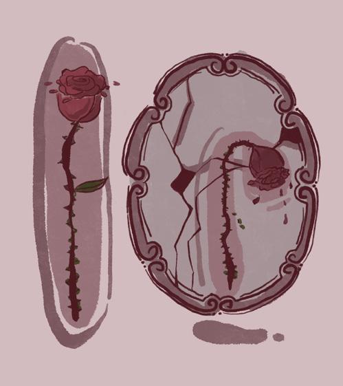 The mirror piece became slippery, then sticky. A better grip. She didn’t bother to wipe off the blood, it gushed freely. In the cracked mirror, it almost looked like she was draped in velvet. With each new cut, her heartbeat grew louder, and louder.