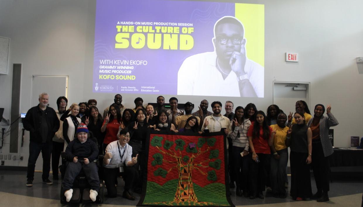 Near the end of the event, after Q & A with Ekofo but just before the group photo, the Access and Inclusion team at the CSE gave a short presentation about a “community quilting project” they were working on through Black History Month with the intention to “recreate and tell the story of Black excellence and culture.” When asked about why events like these that are focused on culture and creative expression are important to have at UTM, Nguyen shared that they “give students a chance to express themselves, explore new ideas, and build community. UTM has such a diverse student body, and creating spaces like this just adds to the strength of that diversity.”
