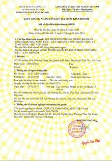 Giấy phép hoạt động khám chữa bệnh và đủ điều kiện khám sức khỏe theo Thông tư số 32/2023/TT - BYT của Phòng khám Đa khoa MEDLATEC Tây Hồ số 1