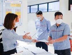 Người lao động làm thủ tục hành chính, nhận hồ sơ khám sức khỏe.