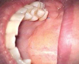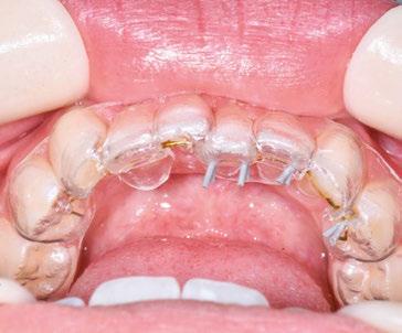 stand the biomechanics of tooth movement, as we are dealing with round wires exerting force on different positions on the tooth. We use a neodiamond bur to cut the ends of the wire. As treatment progresses and the teeth align, it is possible for excess wire to slide out the distal of the canines similar to brackets and wires.