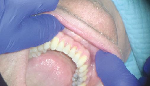 Figure 1 (left): Patient initial photo. Figure 2 (right): Bonding day, April 4, 2024, for a C5 Hidden Orthodontics case to treat the lower 3-3. 0.2 mm IPR between L3-3 was completed that day as well