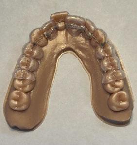 Figure 7 (left): C5 Hidden Orthodontics indirect bonding tray on a model. Figure 8 (right): C5 Hidden Orthodontics bonding tray in the mouth
