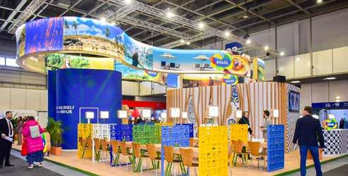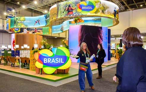 Com 44 coexpositores, o estande brasileiro contou com experiências apresentando vídeos de destinos como Amazônia e Rio de Janeiro. A proposta foi proporcionar ao trade uma vivência que antecipe a experiência real.