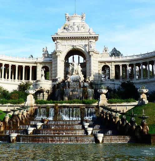 se desenvolveu ao redor do Velho Porto, região considerada o coração histórico e comercial do destino. O cenário mistura barcos de pesca, restaurantes e mercados tradicionais, criando um ambiente que revela a identidade multicultural da cidade. Caminhar pela região permite observar a dinâmica local e entender como o mar continua sendo parte central da vida em Marselha. Entre os principais marcos arquitetônicos está a Catedral de Marselha, conhecida pela imponência e pela arquitetura em estilo romano-bizantino, marcada por cúpulas e detalhes em pedra que dominam o horizonte da cidade. Outro símbolo histórico é o Forte de São João, fortificação construída no século XVII para proteger a entrada do porto. O roteiro pela cidade inclui ainda o Arco do Triunfo de Marselha, localizado na região da Porta de Aix, e o Palácio Longchamp, complexo monumental do século XIX cercado por jardins e fontes que se tornou um dos cartões-postais do destino.