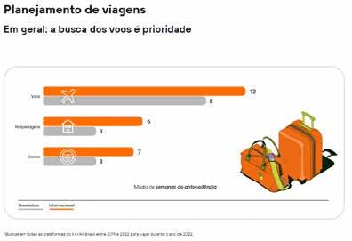Quanto ao planejamento das viagens, o relatório aponta que, para viagens mais longas, como as férias de julho e as férias de final de ano, o planejamento dos viajantes parece começar com cerca de 11 meses de antecedência. Para o Carnaval, os brasileiros começaram a planejar a