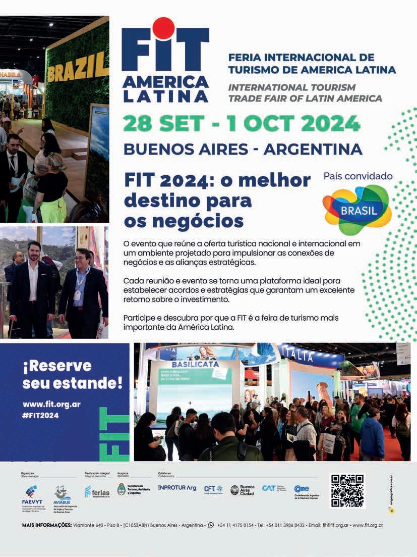 Entre os dias 28 de setembro a 1º de outubro, os principais players do turismo global se reúnem na FIT Buenos Aires 2024, no La Rural Convention & Exhibition Center. O Brasil será o país anfitrião convidado desta edição.