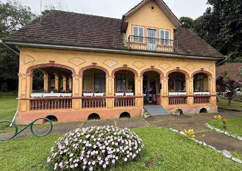 especialmente os alemães que chegaram à região no século XIX. Na parte externa, uma réplica de casa enxaimel ajuda a contar essa história. Em frente ao museu, a Alameda Brüstlein, também conhecida como Rua das Palmeiras, é um dos cenários mais fotografados da cidade, com suas palmeiras imperiais plantadas em 1873. Com foco em tecnologia, empreen- dedorismo e desenvolvimento, o Ágora