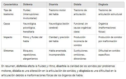 4.1 Características distintivas de la disfemia y la disartria en contraste con la dislalia y la disglosia.