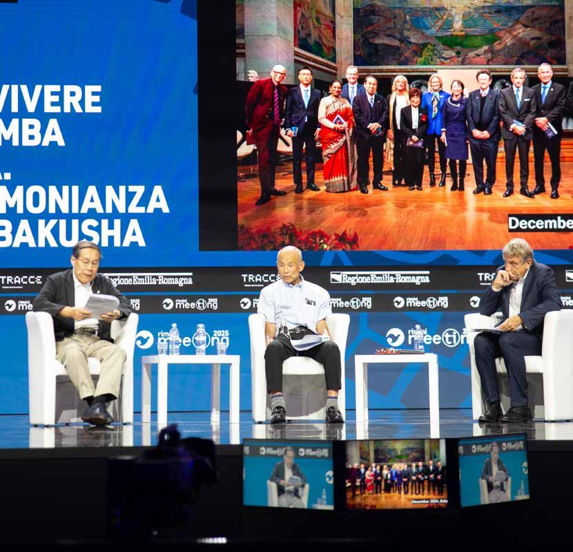 MAGGIOLI amministratore delegato Gruppo Maggioli | FRANCESCO MAGNI professore di Pedagogia Generale e Sociale, Università degli Studi di Bergamo | MARIA ELENA MAGRIN delegata della rettrice, Università Milano-Bicocca per il Polo Penitenziario | PAOLO MAINO presidente Di.S.A.L. e dirigente scolastico ITE Gadda Rosselli, Gallarate | LORENZO MALAGOLA deputato al Parlamento italiano | PAOLO MALAGUTI scrittore e docente | SIMONA MALPEZZI senatrice della Repubblica, Partito Democratico e vicepresidente Commissione bicamerale infanzia e adolescenza | MARCO MALTONI Medicina e Persona, direttore Unità Cure Palliative della Romagna, presidente associazione Sul sentiero di Cicely – Per le Cure Palliative APS | FRANCESCO MAMBRETTI Post Doc Atomistic Simulations, Istituto italiano di Tecnologia | FRANCESCO MANFREDI presidente INDIRE | GAETANO MANFREDI presidente ANCI | ALICE MANGANOTTI Associazione Genitori Scuole Cattoliche | LIBERATO MANNA senior Scientist NanoChemistry, Istituto italiano di Tecnologia | DAN MAOZ George S. Wise Professor, Tel-Aviv University School of Physics and Astronomy | ANDREA MARCHI delegato tecnico Regionale Operazioni Emergenza e Soccorso | LORENZO MARGIOTTA architetto | FRANCESCA MARIOTTI presidente ENEA | ALFREDO MARRA professore di Diritto amministrativo, Università Milano-Bicocca | EUGENIO MARTANI clarinettista | SERGIO MARULLO DI CONDOJANNI CEO Angelini Industries | SIGRID MARZ presidente UNIAPAC | LORENZO MASSUCCHIELLI Responsabile UO Emergenze Internazionali, CRI | LUCA MASTRANTONIO amministratore delegato Nuclitalia | VIVIANA MATRANGOLA assessora Cultura, tutela e sviluppo delle imprese culturali, Politiche Migratorie, Legalità e Antimafia sociale Regione Puglia | BERNARDO MATTARELLA amministratore delegato Invitalia | BERNARDO GIORGIO MATTARELLA professore di Diritto Amministrativo, Luiss “Guido Carli” | ERICA MAZZETTI deputata, Commissione Ambiente, Territorio e Lavori Pubblici, Camera dei Deputati | FABIO MAZZOLENI presidente Banco Informatico | COLUM MCCANN scrittore | JARED MCNEILL attore teatrale, regista e performer | PATRIZIA MECOCCI direttrice Struttura Complessa di Geriatria e professore di Gerontologia e Geriatria, Università degli Studi di Perugia | GIORGIO MEDICI vicepresidente del Banco delle Cose | CORRADO MEDIOLI fisarmonicista | GIORGIA MELONI presidente del Consiglio dei Ministri | ALESSANDRO MENEGATTI presidente cooperativa sociale Work and belong, Comacchio | DOMENICO MENORELLO coordinatore network associativo “Ditelo sui tetti” | FABIO MERCORIO professore di Computer Science, Università Milano-Bicocca e Fondazione per la Sussidiarietà | ROBERTA METSOLA presidente Parlamento Europeo | LUCIA MIGLIORELLI VRAI Lab | LOURDES MIGUÉLEZ MATILLA suora agostiniana missionaria | FERNANDO MILANÉS presidente Congreso Internacional de las Familias (CIFAM), México | TOSHIYUKI MIMAKI Nihon Hidankyo Organization, premio Nobel per la Pace 2024 | NICOLA MINASI Ministro Plenipotenziario capo dell’Unità di Crisi del MAECI | MARIE-DOMINIQUE MINASSIAN responsabile progetto “Gli scritti di Tibhirine” | TOMMASO MINOLA professore di Ingegneria Economico-Gestionale, Università di Bergamo | EMILIO MINUNZIO consigliere CNEL | MASSIMO MONACELLI general manager Generali Italia | MAURO MONTESI Associazione Azione per Famiglie Nuove | MICHELE MORANA titolare della sede AICS di Addis Abeba competente per l’Etiopia, l’Eritrea, il Sudan, il Sud Sudan e il Gibuti | ITALO MORONI executive director Energy & Utilities Engineering | LUIGINA MORTARI professore di Pedagogia Generale e sociale, Università degli Studi di Verona | KONSTANTINOS MOSCHOCHORITIS direttore generale INTERSOS | JACQUES MOSCIANESE executive director Institutional Affairs Intesa Sanpaolo | FRANCESCO MOSCONE professore di Scienza delle Finanze, Università di Venezia | GIOVANNI MULAZZANI Fondazione per la Sussidiarietà | FRANCO MUSSIDA musicista | MARCELLO NALDINI II Faro Coop Sociale | PIERGIOVANNA
