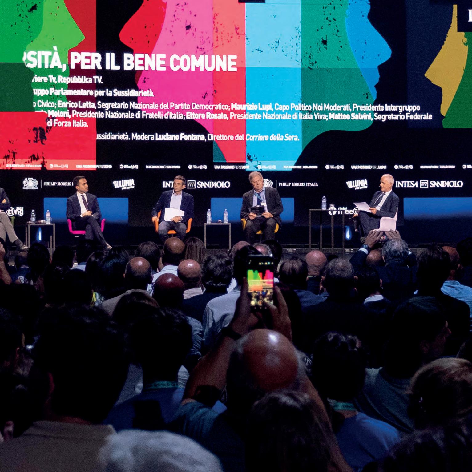NELLA DIVERSITÀ, PER IL BENE COMUNE ANTONIO TAJANI Vicepresidente di Forza Italia ETTORE ROSATO Presidente Nazionale di Italia Viva MATTEO SALVINI Segretario Federale della Lega GIORGIA MELONI Presidente nazionale di Fratelli d’Italia ENRICO LETTA Segretario Nazionale del Partito Democratico LUIGI DI MAIO Capo Politico di Impegno Civico MAURIZIO LUPI Capo politico Noi Moderati, Presidente Intergruppo parlamentare per la Sussidiarietà GIORGIO VITTADINI Presidente Fondazione per la Sussidiarietà LUCIANO FONTANA Direttore del Corriere della Sera 26 PROGRAMMA MARTEDÌ 23 AGOSTO
