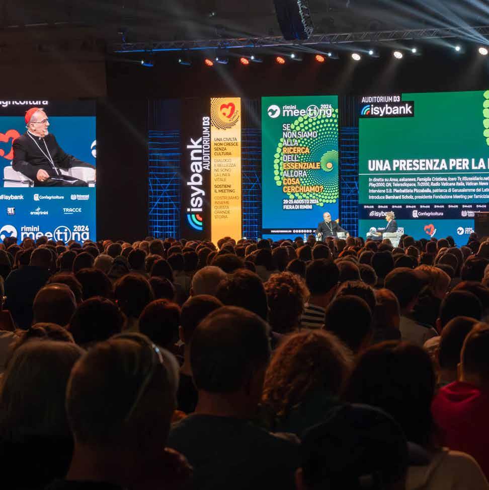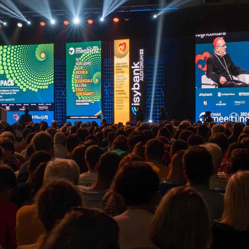 editorialista | Cristiana Scelza presidente Valore D | Paul Schiek fondatore TBW Books | Orazio Schillaci ministro della Salute | EricEmmanuel Schmitt scrittore, autore del testo La Sfida di Gerusalemme - Un viaggio in Terra Santa (LEV) | Bernhard Scholz presidente Fondazione Meeting per l’amicizia fra i popoli ETS | Mario Antonio Scino capo di gabinetto Ministro dell’Ambiente e della Sicurezza energetica | Cristina Scocchia amministratore delegato Illycaffè | Francesco Seghezzi presidente Fondazione Adapt | Noemi Serracini autrice e conduttrice con esperienza in radio, tv e teatro | Matteo Severgnini rettore della scuola Regina Mundi di Milano, responsabile di Gioventù Studentesca | Emmanuele Silanos sacerdote della Fraternità San Carlo Borromeo | Giorgio Silli sottosegretario agli Affari Esteri e alla Cooperazione Internazionale | Giampaolo Silvestri segretario generale AVSI | Maria Acqua Simi giornalista Tracce | Andrea Simoncini vicepresidente Fondazione Meeting per l’amicizia fra i popoli ETS, professore di Diritto Costituzionale, Università di Firenze | Alberto Sinigallia presidente Fondazione Progetto Arca onlus | Simona Sirena responsabile Avsi Point di Rimini | Elisabetta Soglio giornalista de Il Corriere della Sera, responsabile dell’inserto Buone Notizie-L’impresa del bene | Luca Sommacal presidente Associazione Famiglie per l’accoglienza | Julivam Estevam Souza Santos fisico e responsabile di un progetto di Robotica destinato agli alunni del Centro Educativo João Paulo II | Alberto Sportoletti presidente Rete Manager | Fabrizio Starace presidente Società Italiana di Epidemiologia Psichiatrica | Alice Stefanizzi direttrice marketing, raccolta fondi e comunicazione Fondazione Progetto Arca onlus | Angelo Sticchi Damiani presidente ACI | Alessandra Stoppa direttore Tracce | Gianpiero Strisciuglio amministratore delegato RFI | Nang Swe Swe Aye rappresentante Paese di AVSI in Myanmar | Luca Tagliaretti direttore esecutivo del Centro europeo di competenza sulla cyber-sicurezza | Antonio Tajani ministro degli Affari Esteri e della Cooperazione Internazionale | Salvatore Taormina Redazione Culturale del Meeting per l’amicizia fra i popoli | Adele Tellarini responsabile tecnico dell’opera Casa Novella | Donatella Tesei presidente Regione Umbria | Gabriele Toccafondi responsabile Osservatorio Iride | Roberto Tomasi amministratore delegato Autostrade per l’Italia | Massimiliano Tonarini presidente Cdo Opere Educative | Andrea Tornielli direttore editoriale del Dicastero per la Comunicazione della Santa Sede | Guido Torrielli presidente Rete ITS Italia | Paolo Tosoni avvocato penalista | Giuseppe Tripoli segretario generale Unioncamere | Marco Trivelli Medicina e Persona | Stephen Tumukugize giovane agro-imprenditore coinvolto nel progetto SAY | Adolfo Urso ministro delle Imprese e del Made in Italy | Felice Vai vicepresidente Compagnia delle Opere e referente Filiera Energia | Giuseppe Valditara ministro dell’Istruzione e del Merito | Paolo Valvo curatore della mostra | Ewine van Dishoeck star and planet formation expert, Kavli-Prize winner, Leiden Observatory | Lourdes Velazquez professoressa di Filosofia e Bioetica, Università Panamericana (Messico) | Paolo Veronese CEO Veronese Sicurezza e founder Passione Sicurezza | Piero Vietti giornalista Tempi | Giulia Villa attrice | Paolo Vilotta postulatore della causa di beatificazione di Alcide De Gasperi | Luciano Violante presidente Fondazione Leonardo–Civiltà delle Macchine | Lorenza Violini professoressa di Diritto costituzionale, Università degli Studi di Milano | Pasquale Viscanti Founder di AI Week e IA spiegata semplice, divulgatore, autori e podcaster | Giorgio Vittadini presidente Fondazione per la Sussidiarietà | Eliana Viviano capo divisione Mercato del lavoro, Dipartimento di Economia e Statistica Banca d’Italia | Joseph H.H. Weiler University Professor at NYU Law School and Senior Fellow at the Center for European studies at Harvard | Xu Yahan giovane taiwanese convertita al cattolicesimo | Alessandro Zaccuri scrittore | Riccardo Zagaria amministratore delegato Doc Generici | Stefano Zamagni professore di Economia politica, Università di Bologna | Giuseppe Zampino direttore UOC Pediatria Policlinico Gemelli Roma, Responsabile Malattie rare e difetti congeniti Polo della Salute della Donna e del Bambino Fondazione Gemelli | Michele Zanetti già presidente Provincia di Trieste e promotore insieme a Franco Basaglia della legge 180 | Irene Zangrandi studentessa universitaria | Danilo Zardin professore di Storia Moderna, Università Cattolica del Sacro Cuore, Milano | Sara Zenoni professore di genetica agraria - Università di Verona | Sister Zeph premio miglior insegnante al mondo nel 2023 | Anastasia Zolotova direttrice Ong ucraina Emmaus | Vincenzo Zuppardo architetto e curatore della mostra | Matteo Maria Zuppi presidente CEI, arcivescovo di Bologna