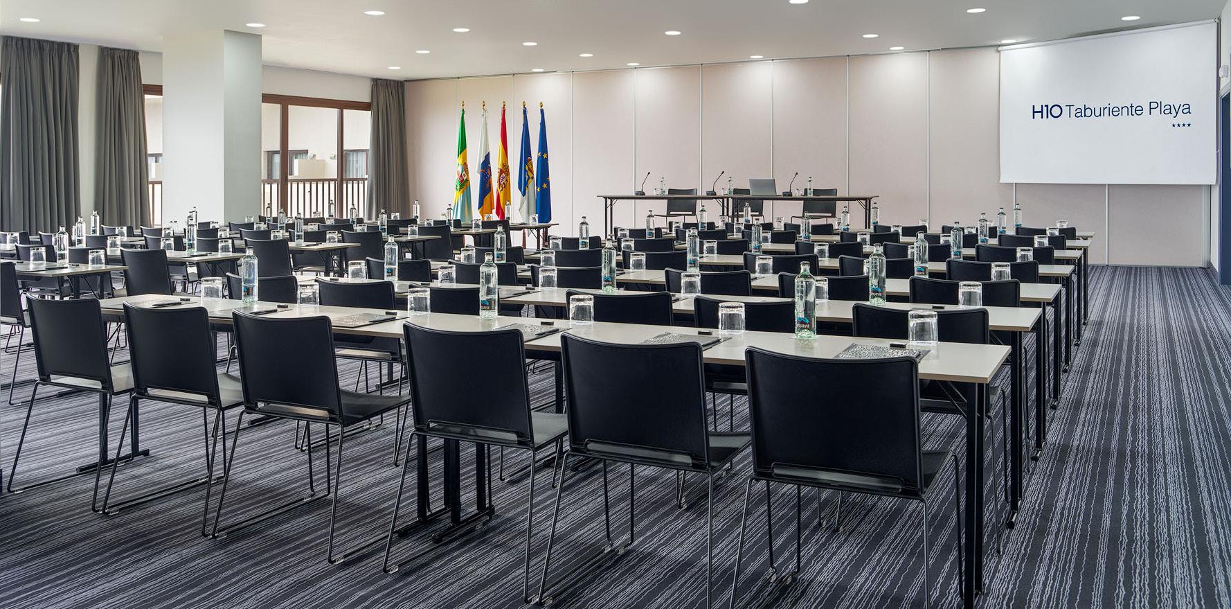 El H10 Taburiente Playa ofrece cuatro salones de reuniones y eventos, tres de los cuales disfrutan de luz natural. Los salones Las Nieves y Teneguía se convierten en uno solo, Breña Baja, con una capacidad de hasta 220 personas. Aparte, los exteriores del hotel son también espacios únicos para los eventos.
