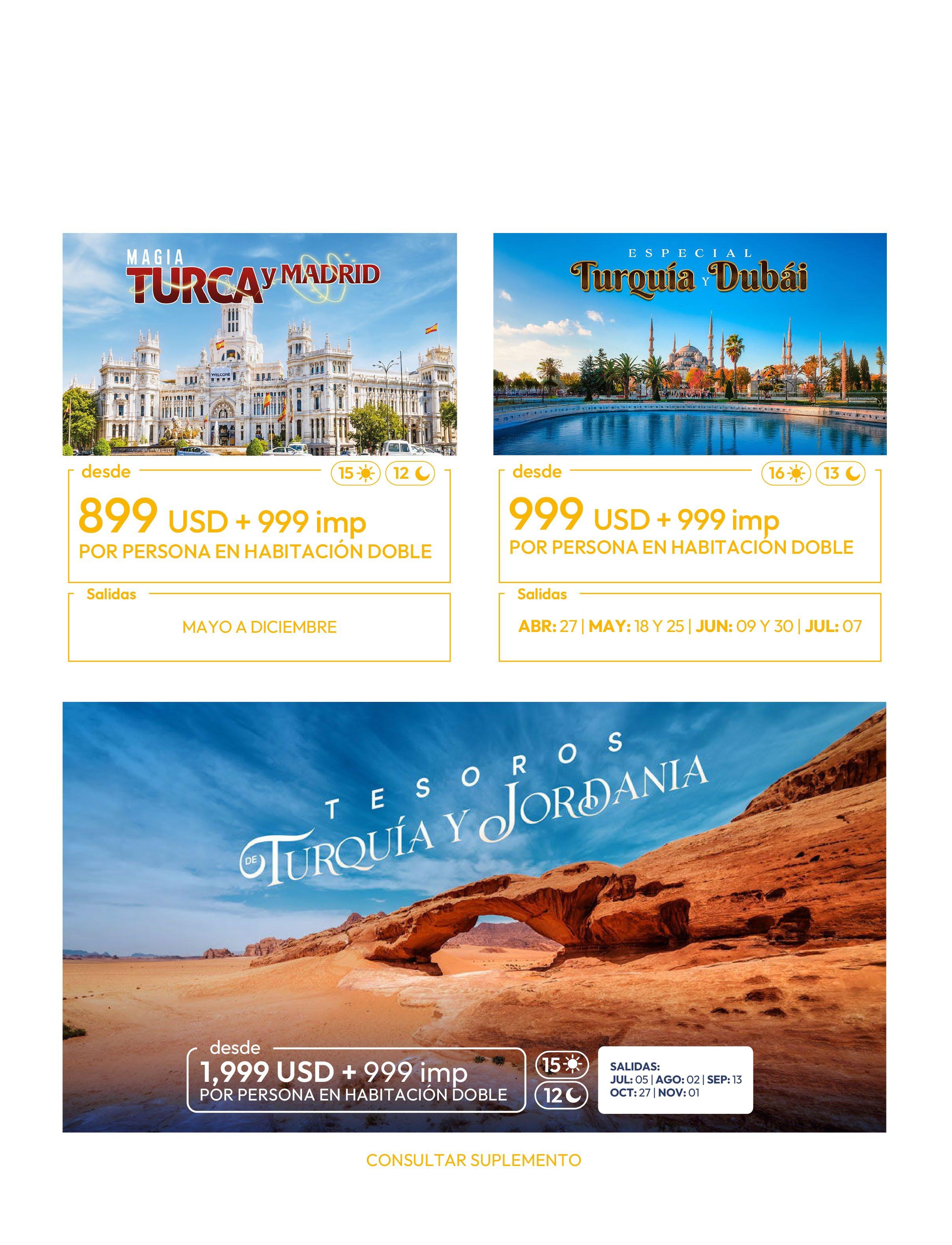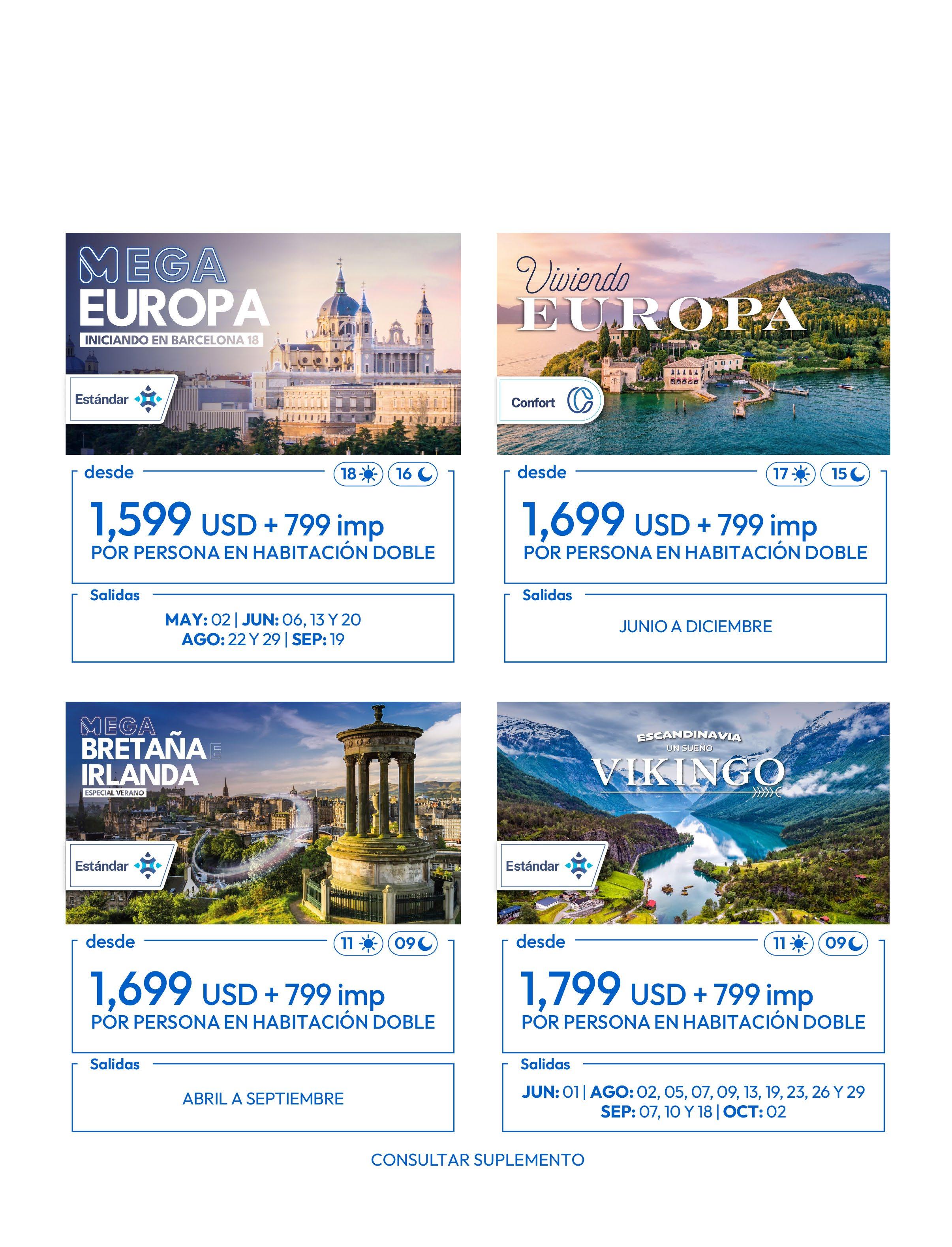 Todos los paquetes descritos en esta publicación incluyen lo siguiente (de acuerdo a itinerario)