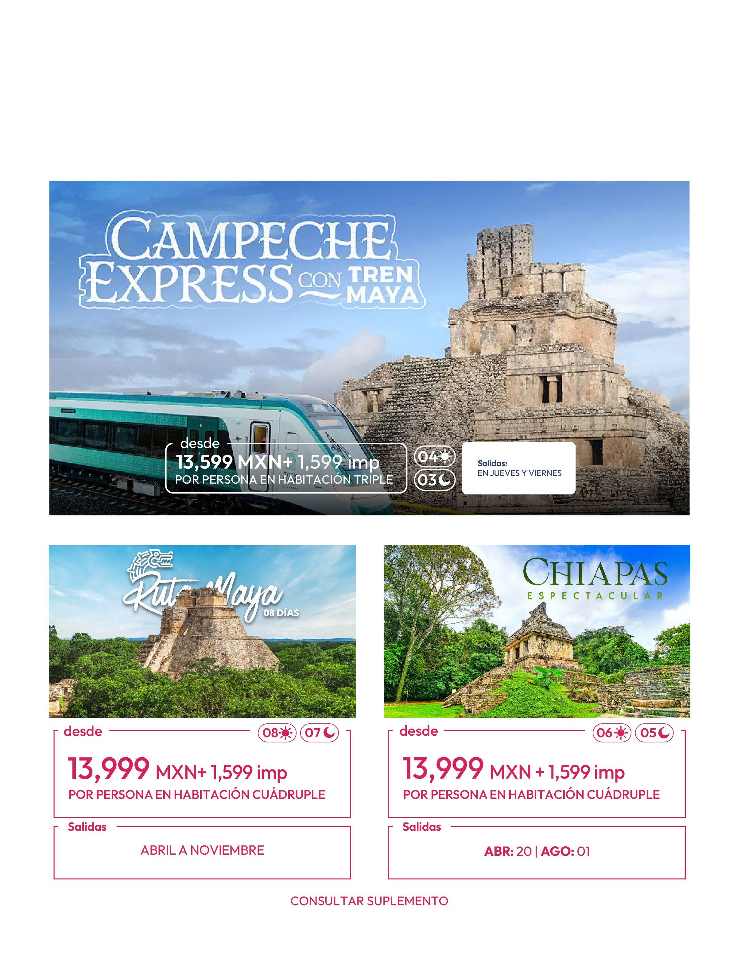 Queremos destacar nuestras rutas por Barrancas del Cobre. Con opciones como “Barrancas del Cobre Espectacular” y “Escápate a Barrancas del Cobre”, ofrecemos recorridos que combinan historia, tradición y paisajes impresionantes, permitiendo conocer el corazón de la Sierra Tarahumara de una manera auténtica y enriquecedora. Además, hemos fortalecido nuestra línea MEGA, ampliando la oferta de producto que podrán descubrir en nuestra contraportada. Cada programa está diseñado para brindar más opciones adaptadas a los intereses de los viajeros.