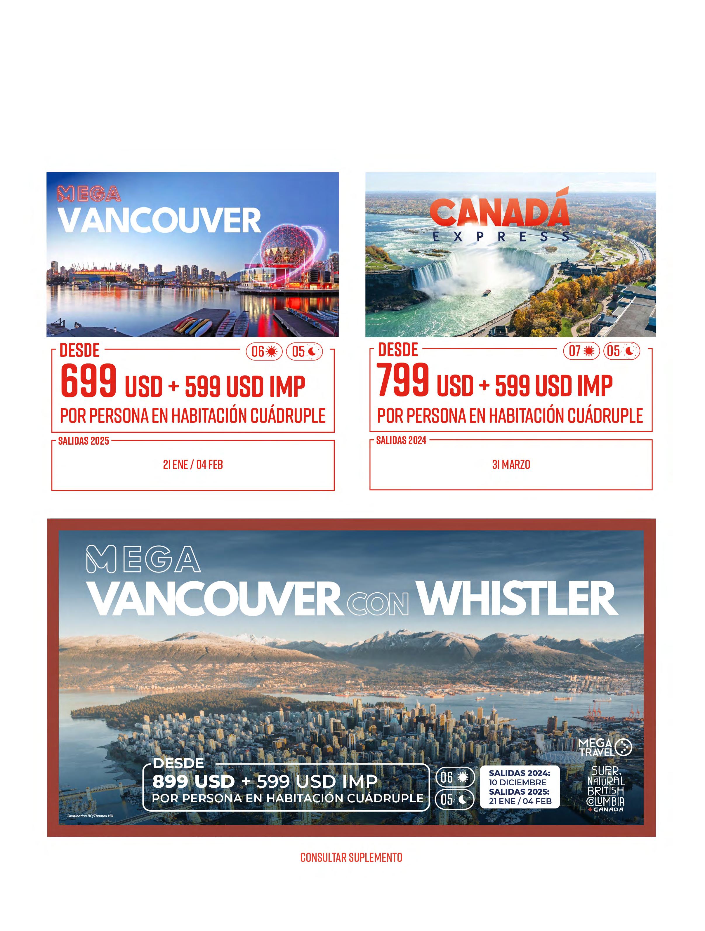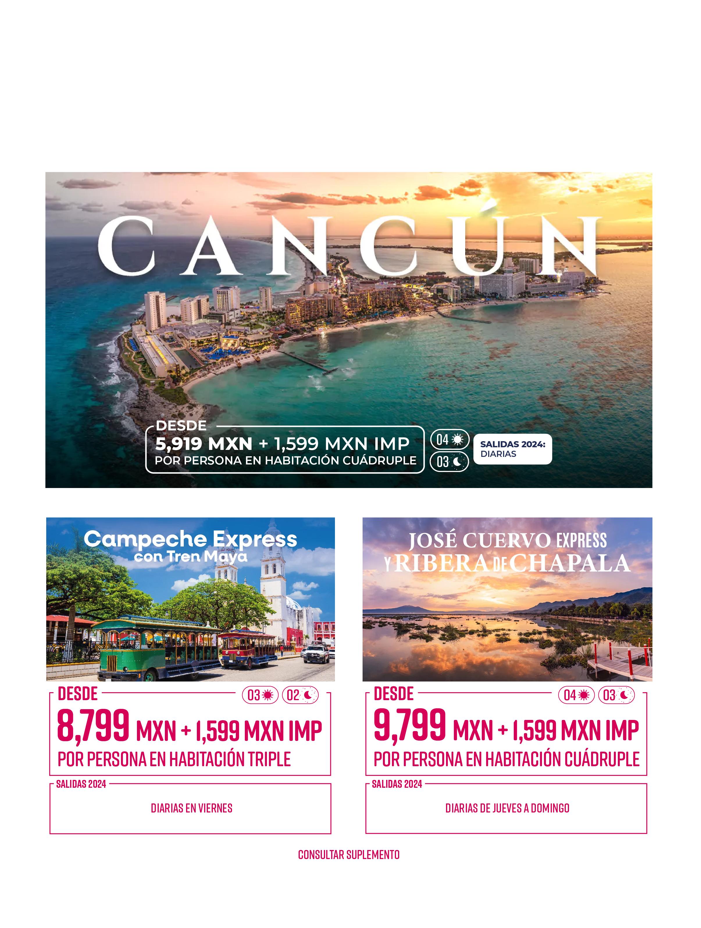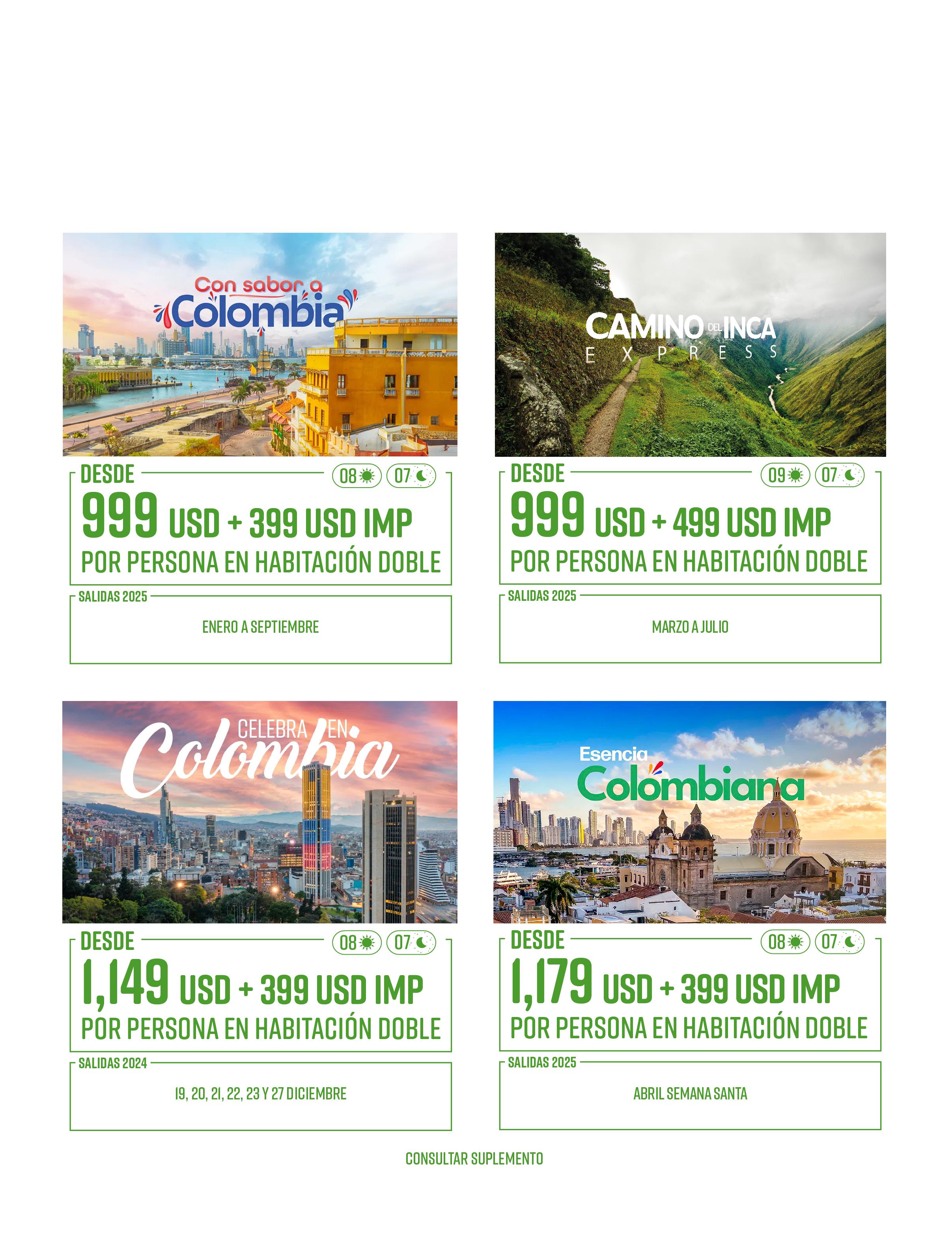 Todos los paquetes descritos en esta publicación incluyen lo siguiente (de acuerdo a itinerario)