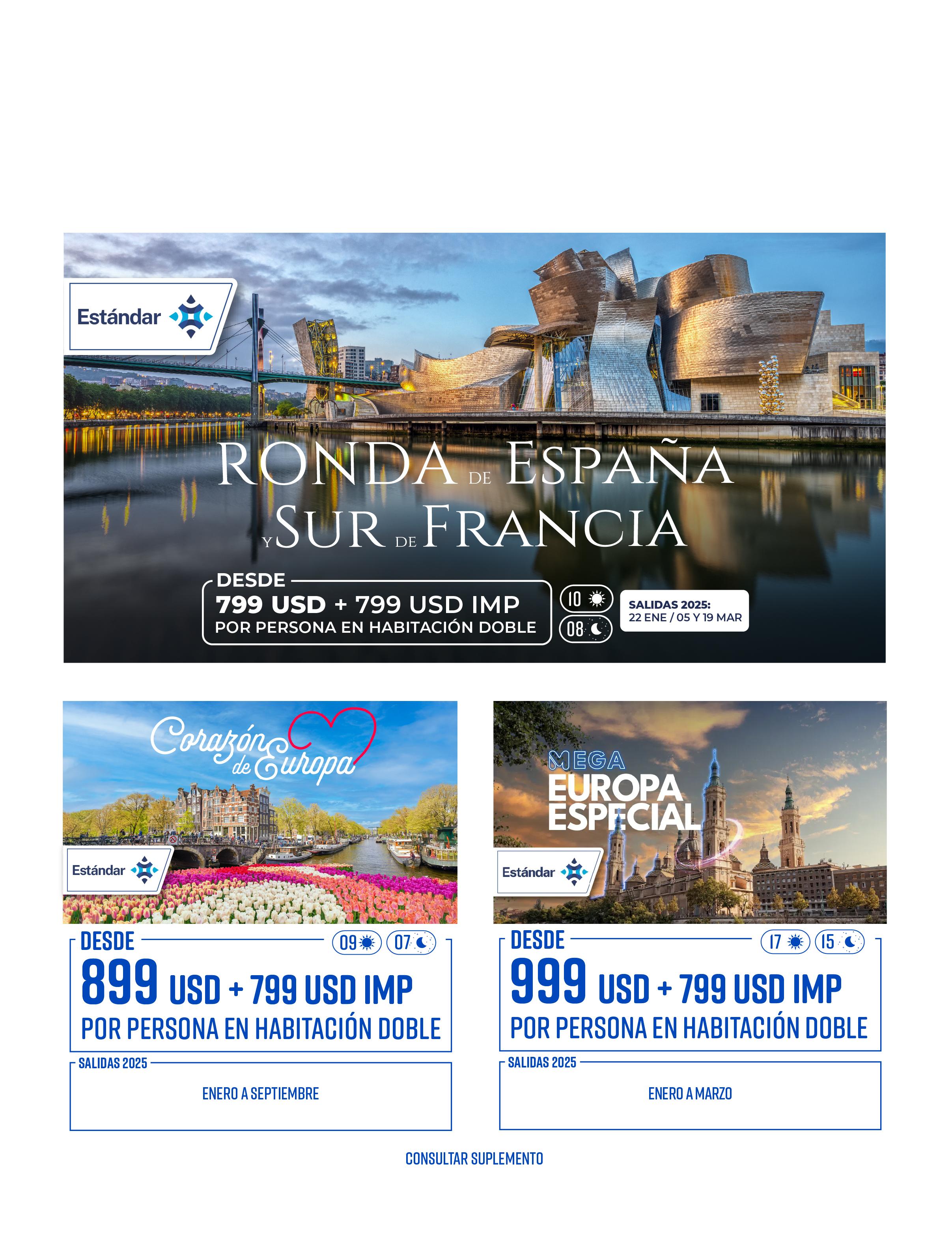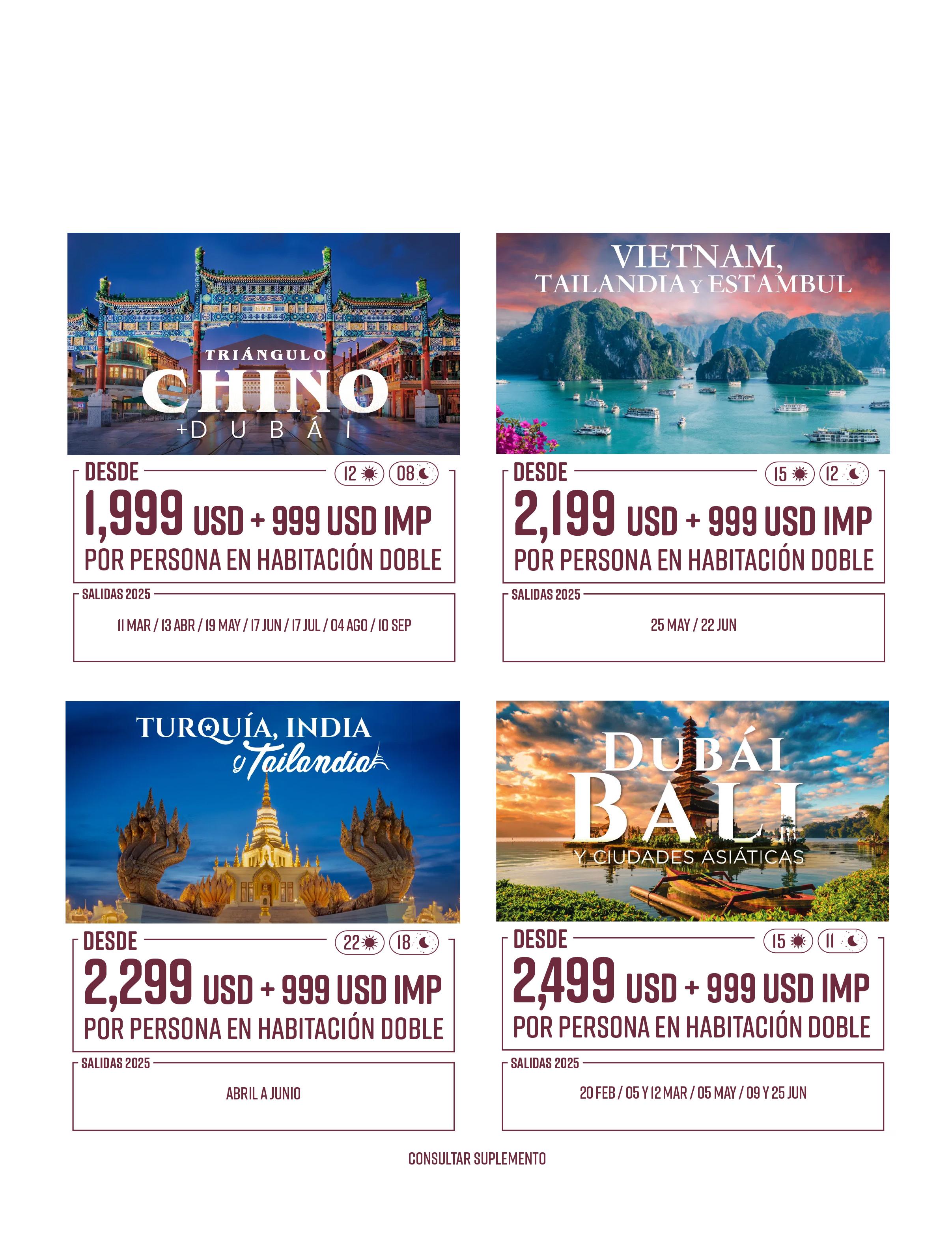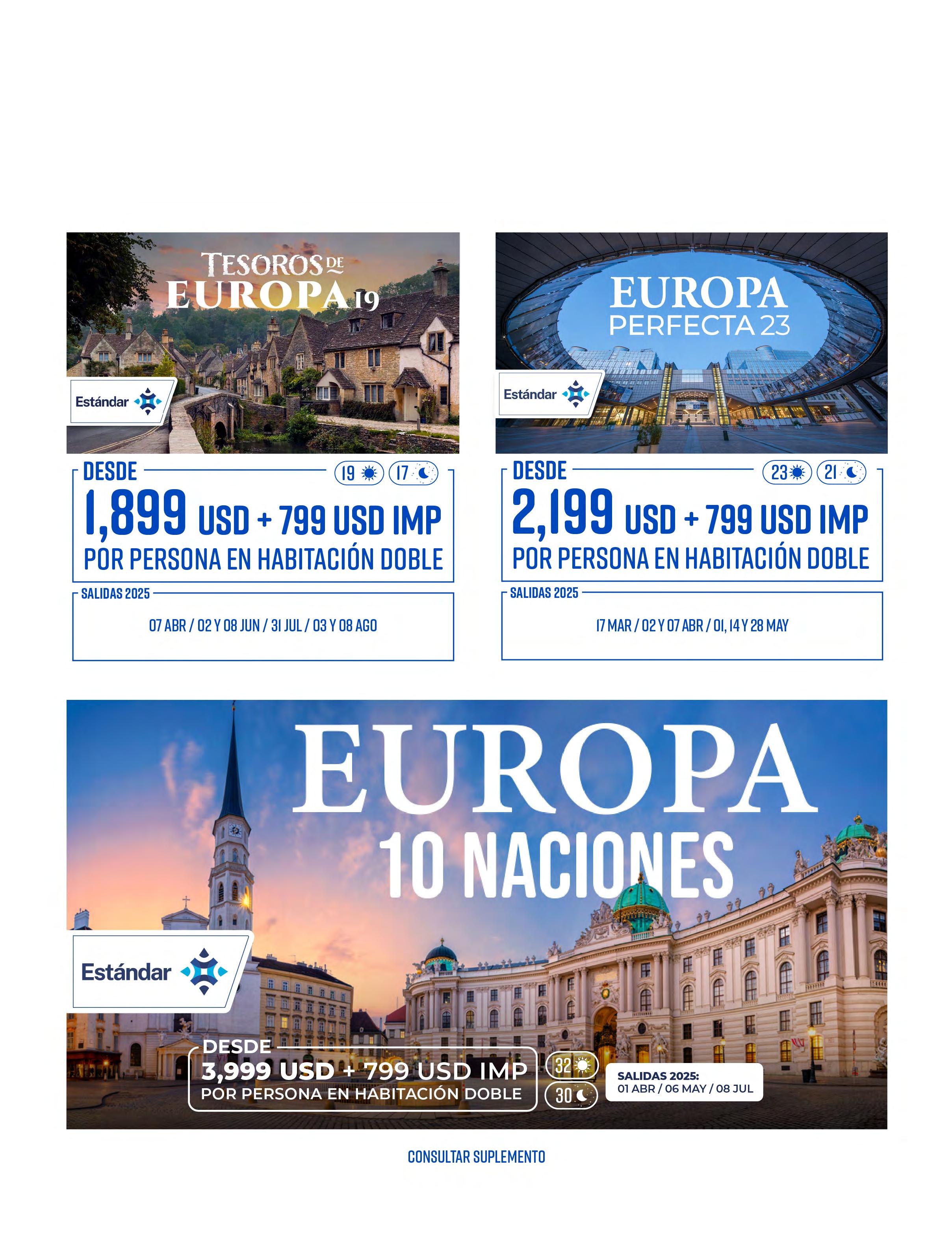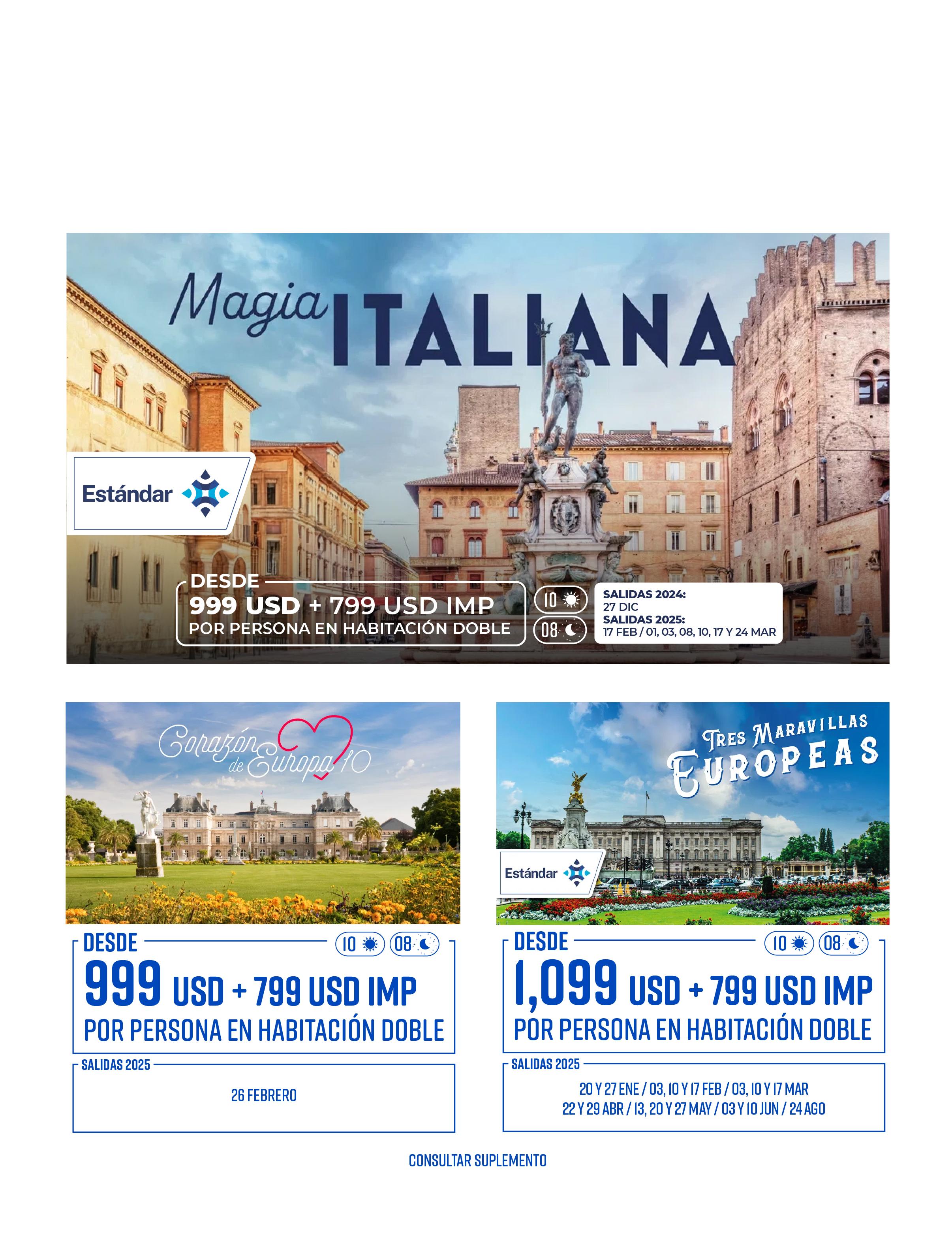 Todos los paquetes descritos en esta publicación incluyen lo siguiente (de acuerdo a itinerario)