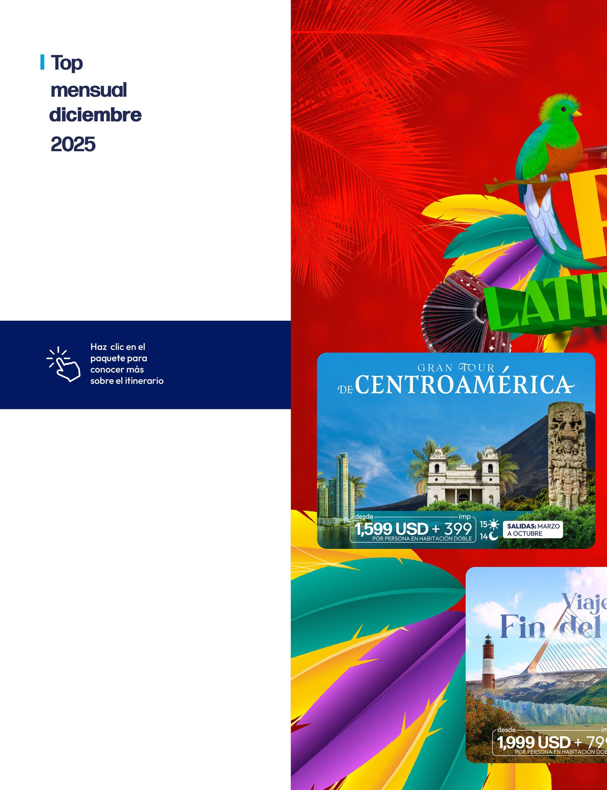 Cerramos el año celebrando nuevos proyectos, destinos imperdibles y propuestas que tus clientes no querrán dejar pasar. Diciembre llega cargado de inspiración para planear el 2026 con las mejores alternativas de viaje.