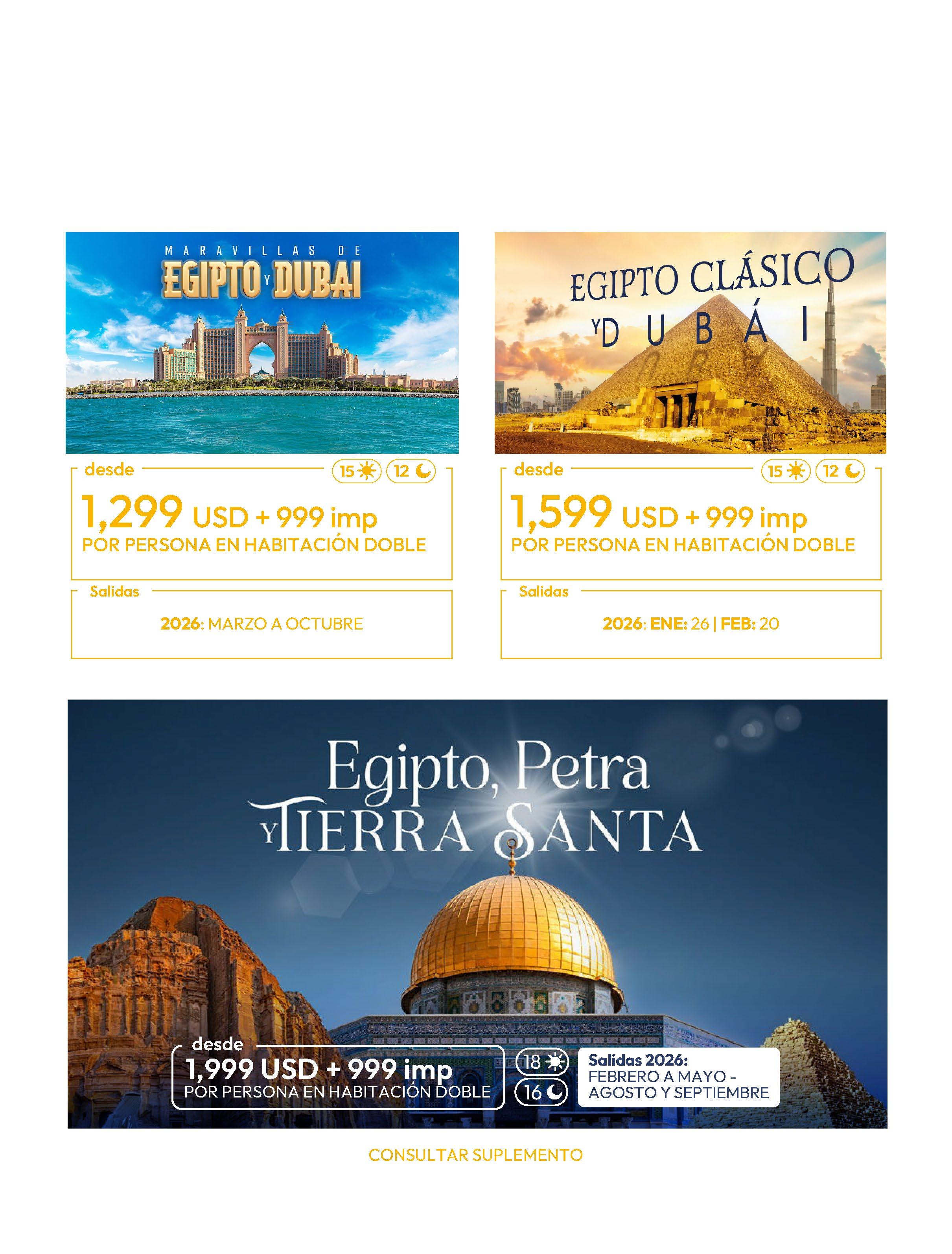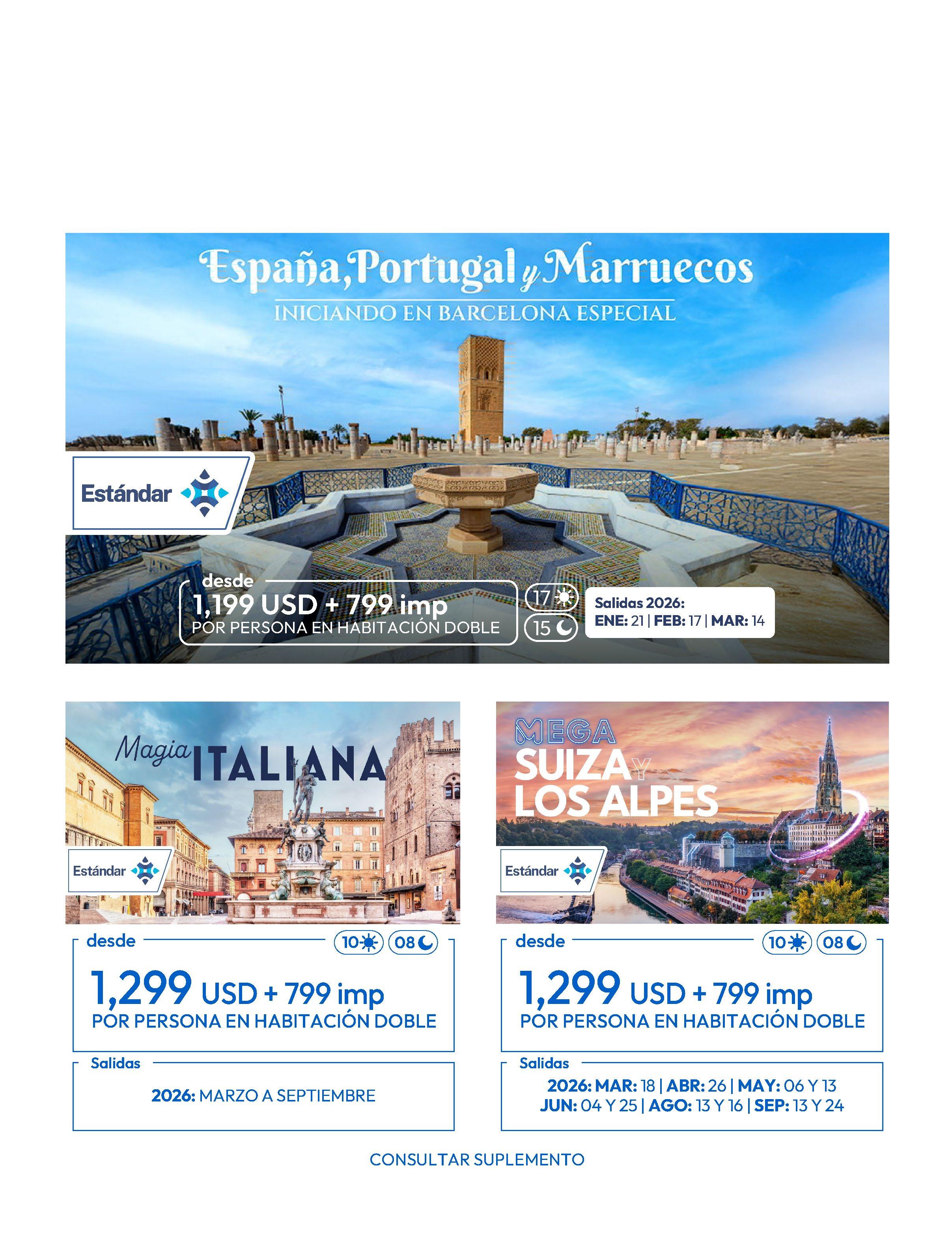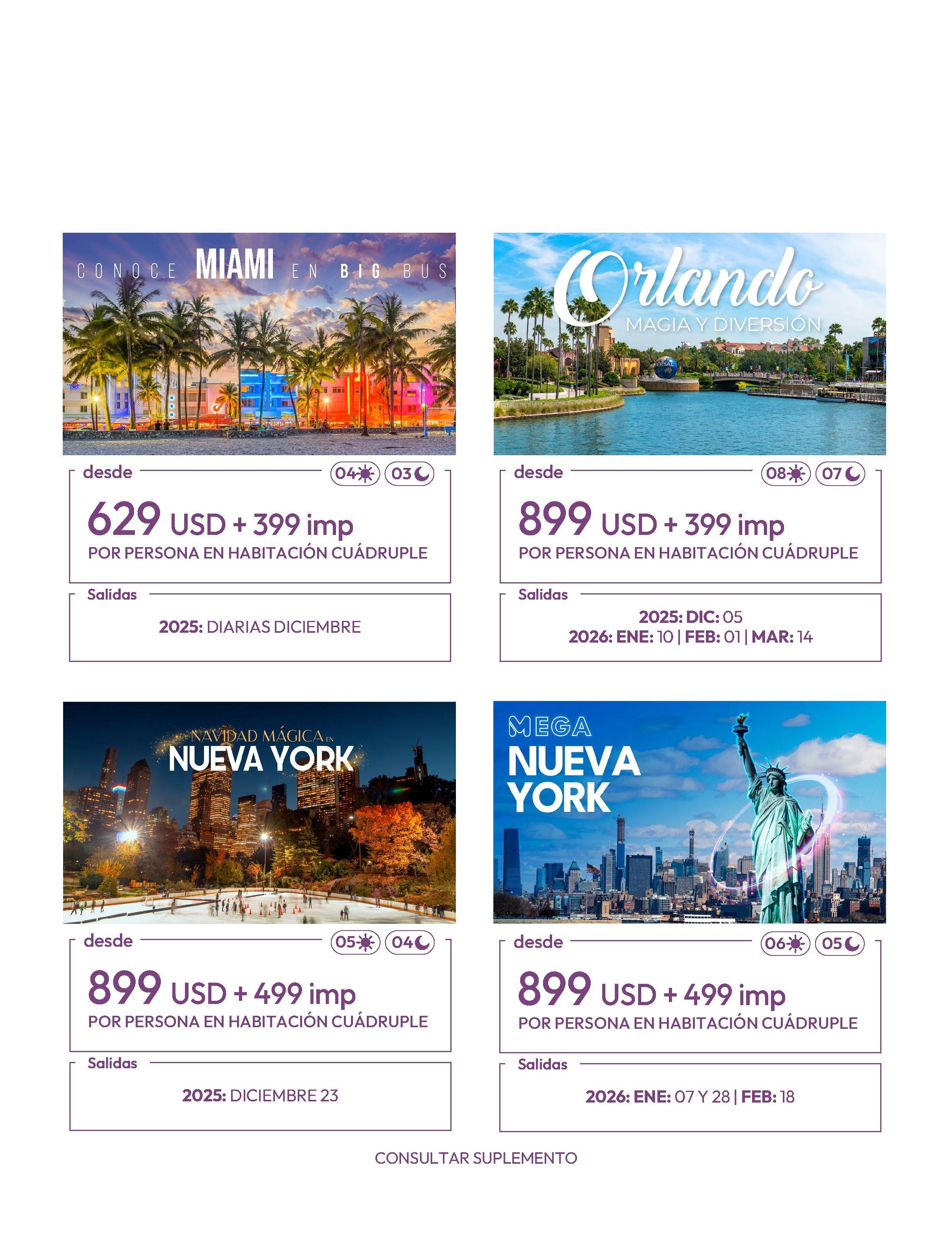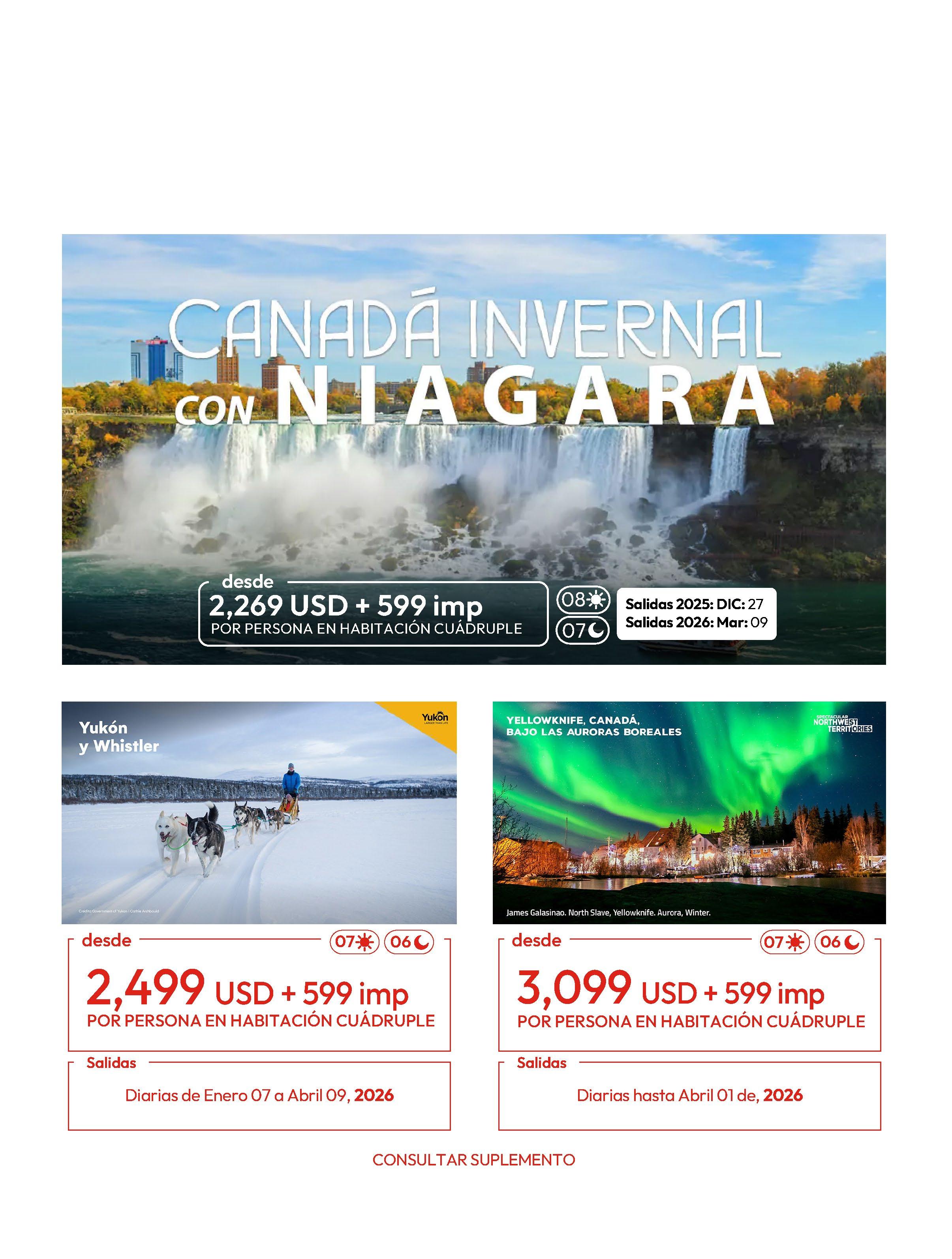 Todos los paquetes descritos en esta publicación incluyen lo siguiente (de acuerdo a itinerario)