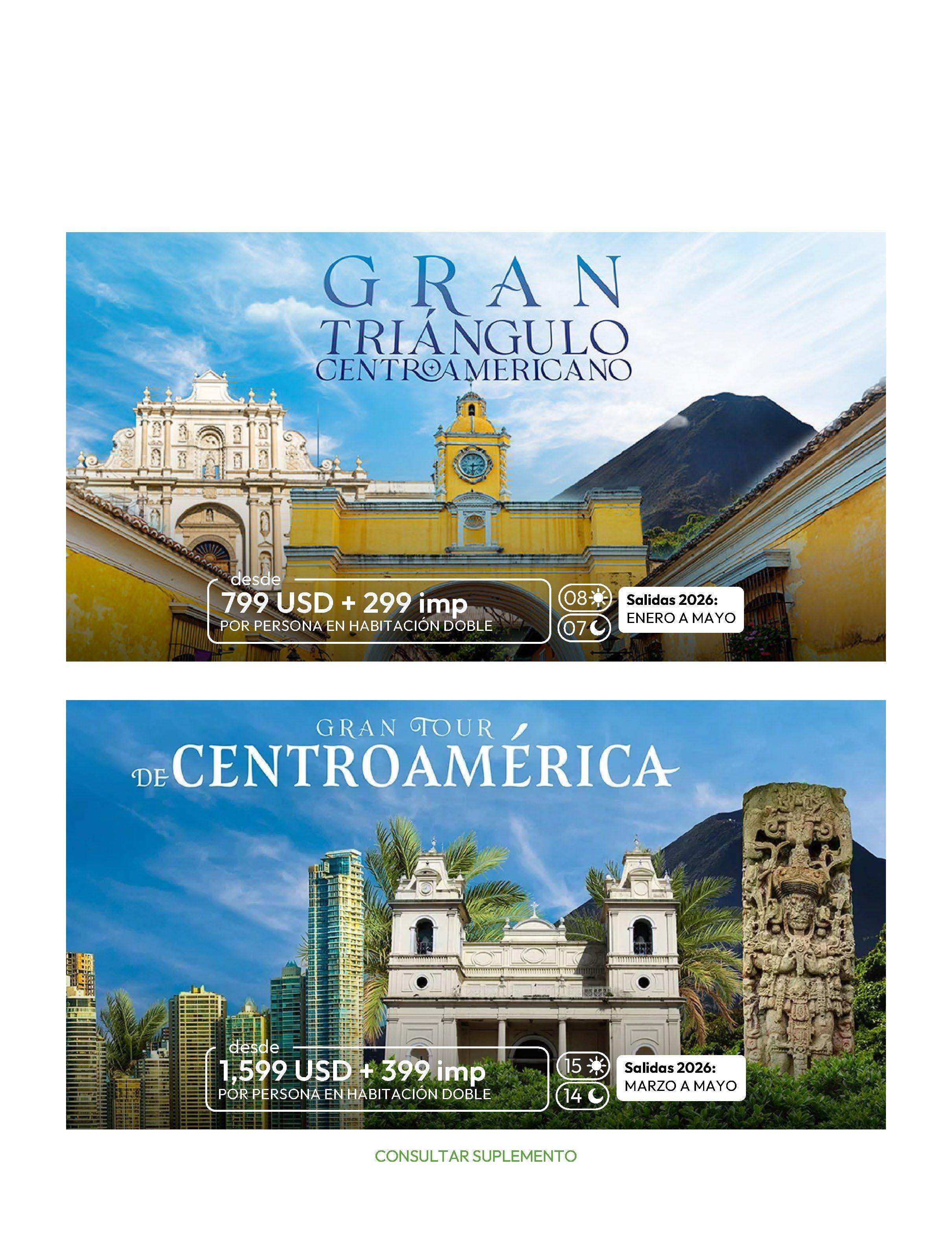 Este mes presentamos nuestra campaña “Rutas latinoamericanas”, una selección especial que reúne algunos de los itinerarios más emblemáticos de Latinoamérica. Desde paisajes naturales sorprendentes en Sudamérica hasta ciudades llenas de historia y sabor en Centroamérica, estas rutas destacan lo mejor de estas regiones y se perfilan como una gran oportunidad comercial para el próximo año.