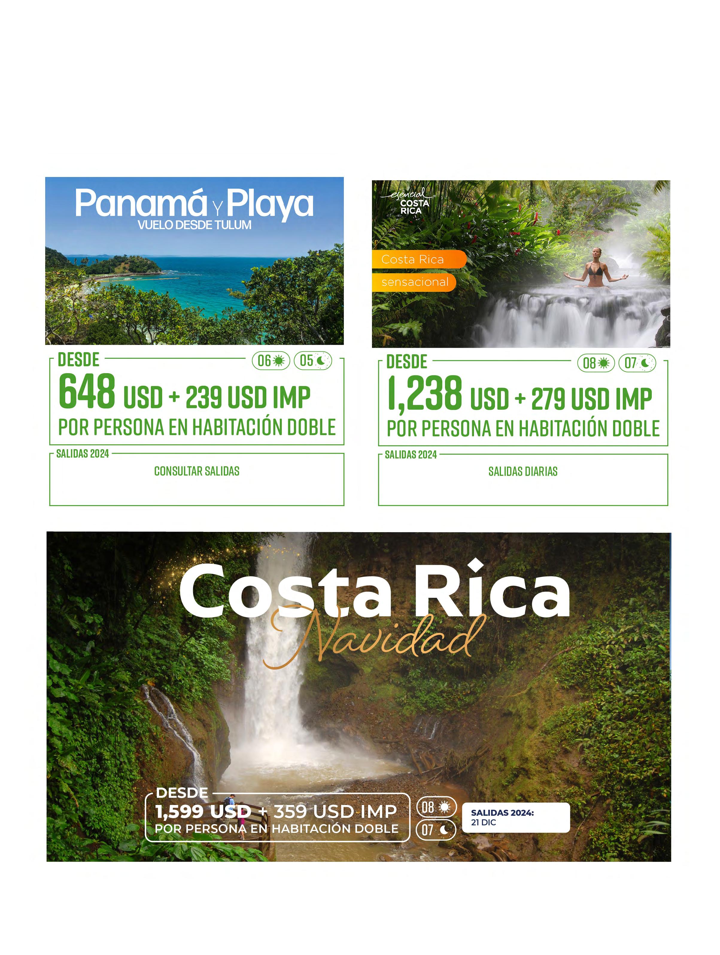 Todos los paquetes descritos en esta publicación incluyen lo siguiente (de acuerdo a itinerario)