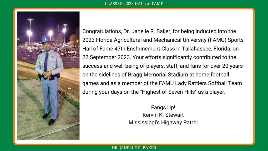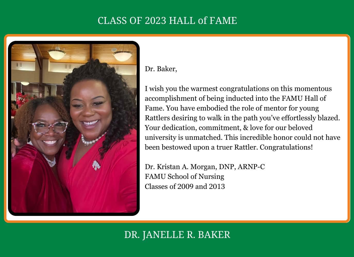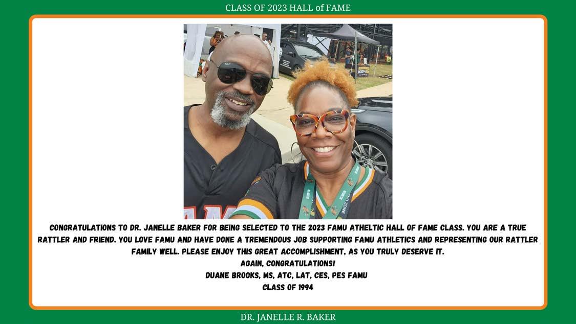 Congratulations Dr. Janelle Baker on your induction to the FAMU Hall of Fame. The recognition of your tireless service and commitment to the university and community is well-deserved