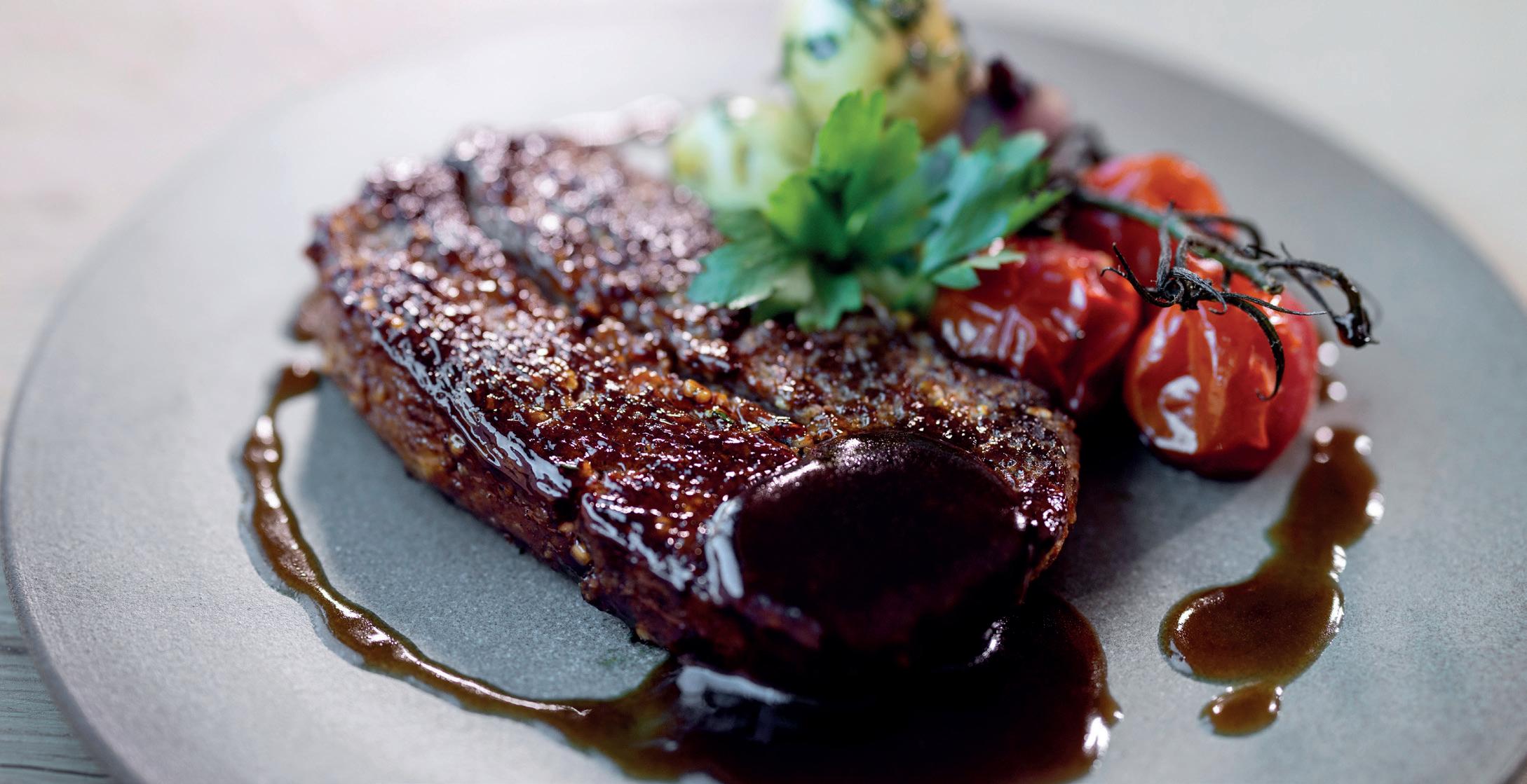 Stekes og krydres godt med BBQ steakhouse rub, peppermiks.