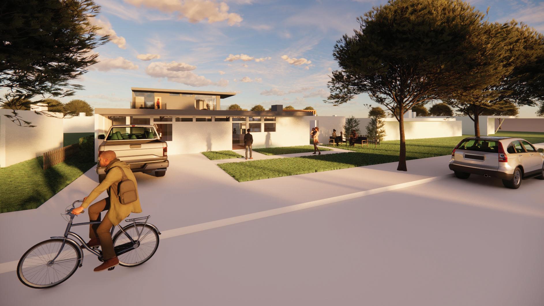 The Ain ADU are about creating a community within land. The project aims at creating community space from the courtyard but also private isolated spaces for each of the dwellings and each Gonzales family. The goal was to blend the new with the old. With the Ain home being relatively unchanged the new ADUs are to take some aspects of the Ain home and continue the language while also adding in modern design ideas and aspects. The homes focus on how not only the interconnecting lives of the family’s but mimics this into the overall shape and designs of the home. The homes chose to connect to the community though the reading garden and little library in the front of the home. The home also prioritizes sustainability to keep up with LA’s sustainability and renewable city approach.