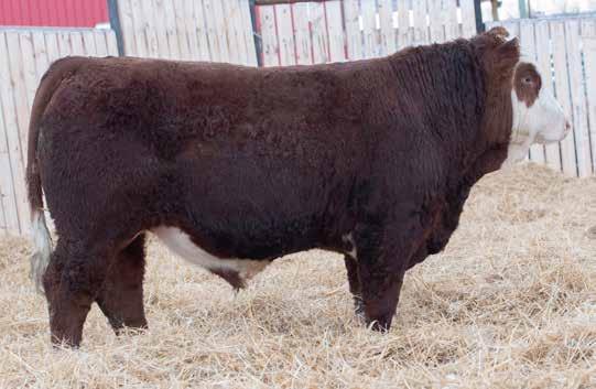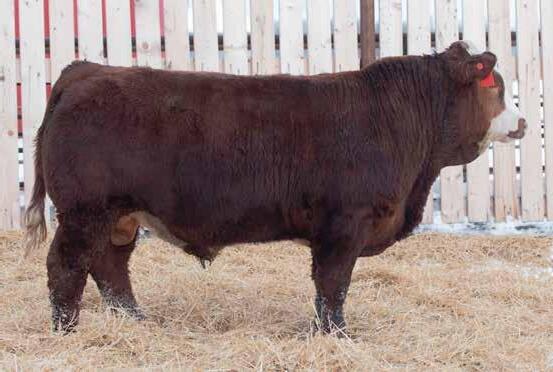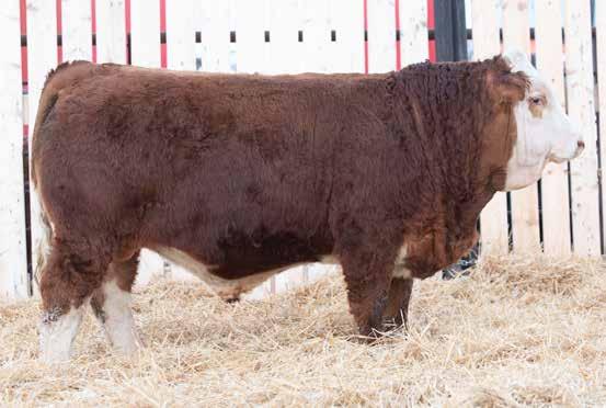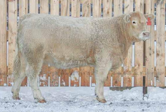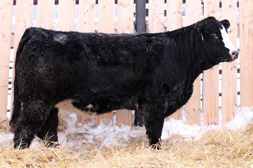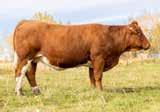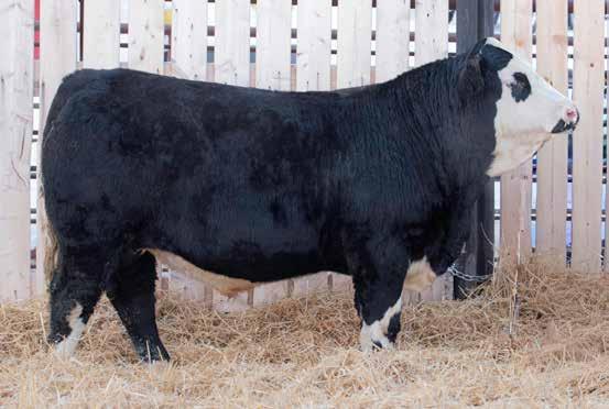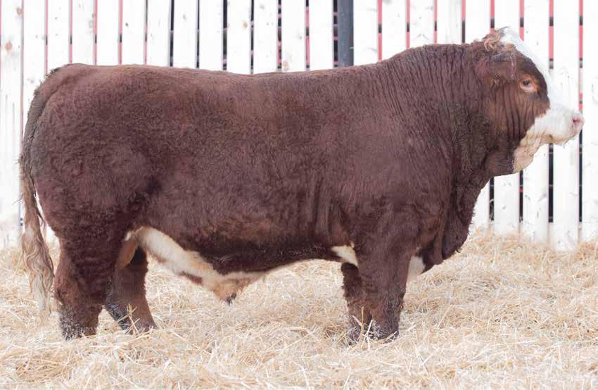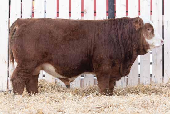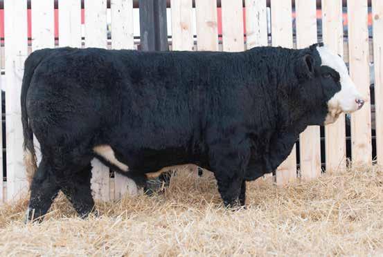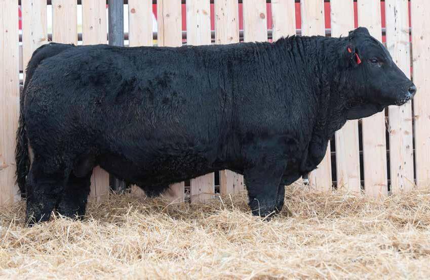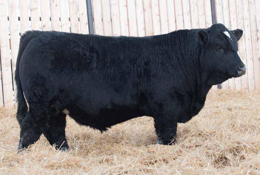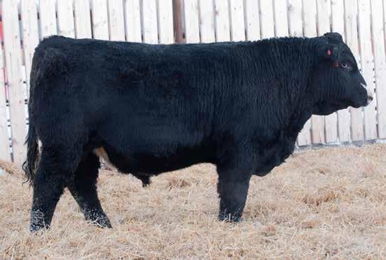 This is a well-balanced bull, characterized by moderate frame, square hips, and an excellent profile. His length and softness are traits likely to help with calving. The dam, BLAZIN JHENE 929J, possesses substantial hip capacity and good feminine attributes. She descends from established cow family known for consistently highquality udders.