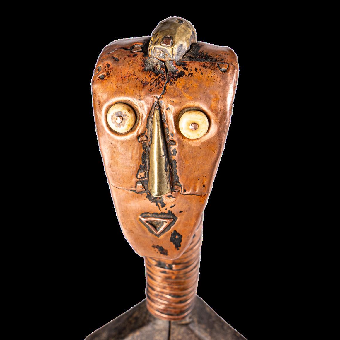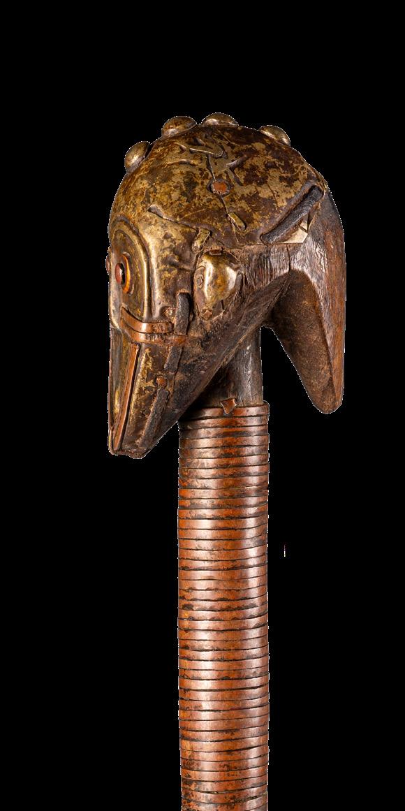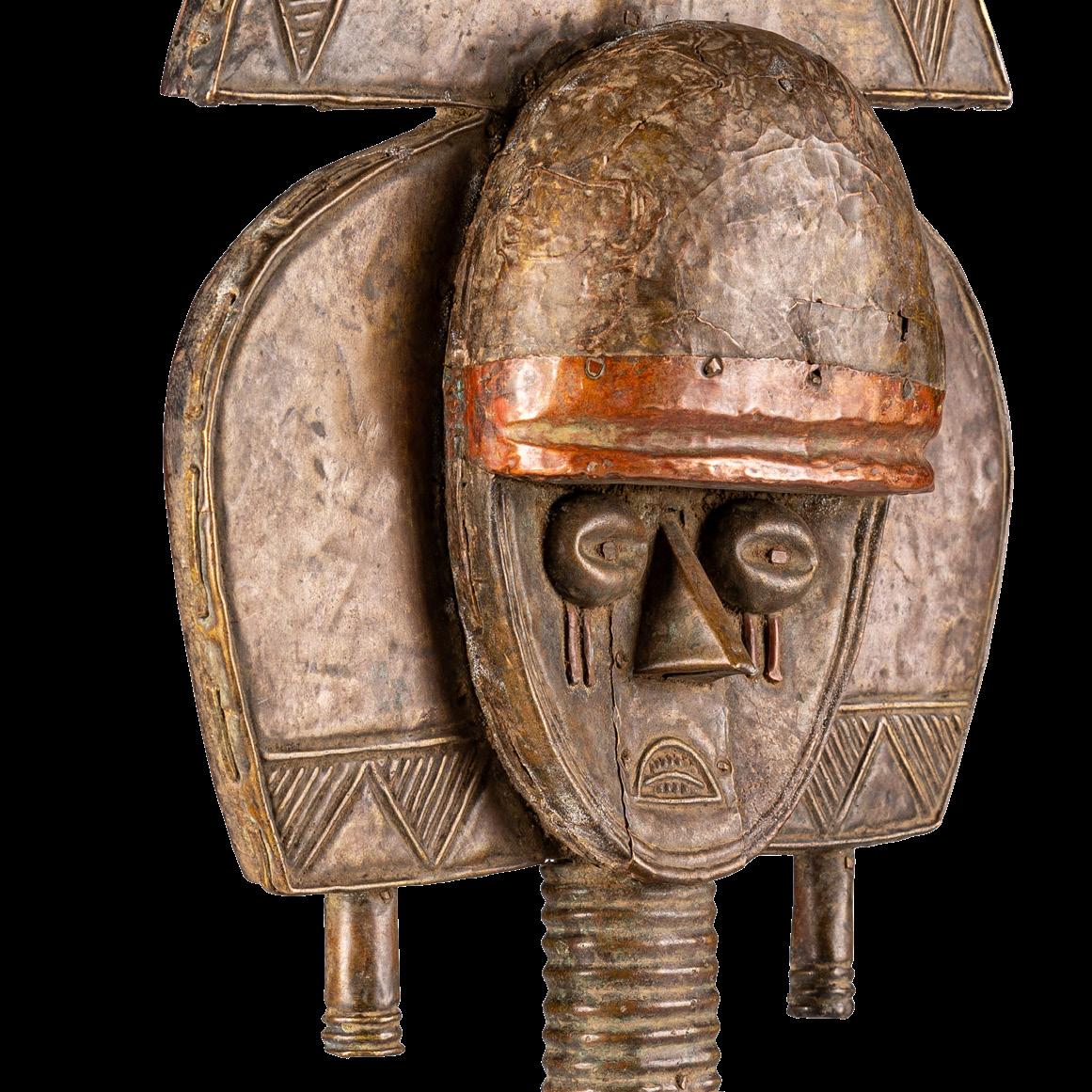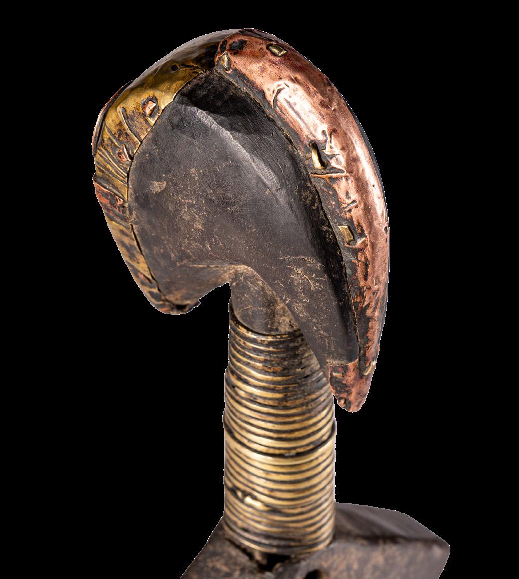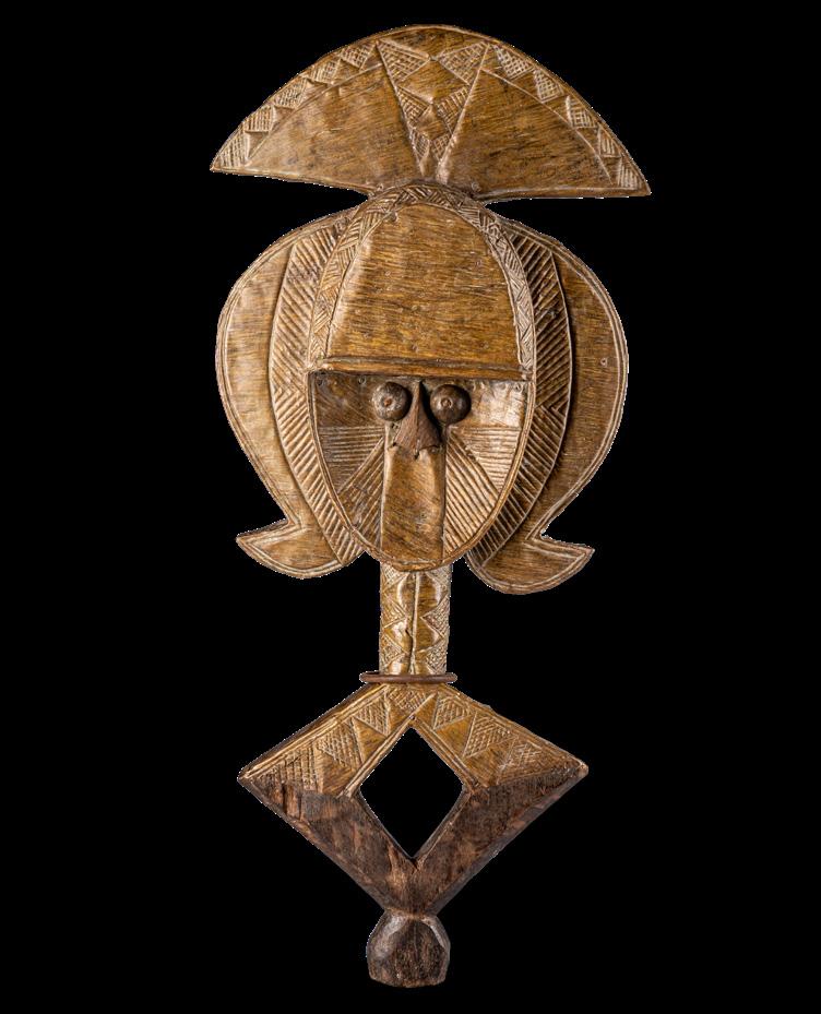 With the Premier exhibition series, we continue to explore the imaginary and visual language of Indigenous cultures, offering readers an immersive journey into a rich universe of art forms. We aim to delve into the intersections of spirituality, identity, and globalisation - universal themes intertwined with the cultural specificities of communities in continuous dialogue with modernity. Kota people from the eastern region of Gabon and parts of the Republic of Congo combine wood and metal - often copper or brass - to create reliquary figures with strong symbolic value. Known as mbulu ngulu, these reliquaries protected and honoured the memory of high-ranking ancestors, securing blessings for the clan. They were central to the rituals of the Bwete cult, moments when crucial decisions for the community were made. These works are now recognised as authentic masterpieces of African art, characterised by unique shapes and stylised faces that conveyed clan identity and continuity. Their aesthetics have influenced numerous 20th-century artists and movements, most notably Cubism. Pablo Picasso, André Derain, Henri Matisse, Constantin Brâncu ș i and many others drew inspiration from the proportions and essential forms of African sculptures, including the Kota reliquaries, to develop new visual languages. Their abstract lines, formal reduction, and iconic energy challenged traditional academic norms. These sculptures continue to captivate and engage, collected and studied by the leading museums and foundations worldwide, bearing witness to a timeless intercultural dialogue.