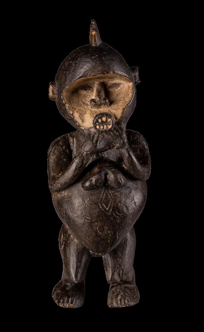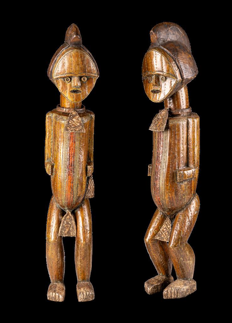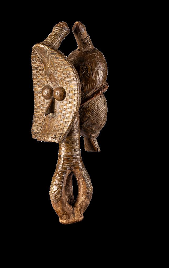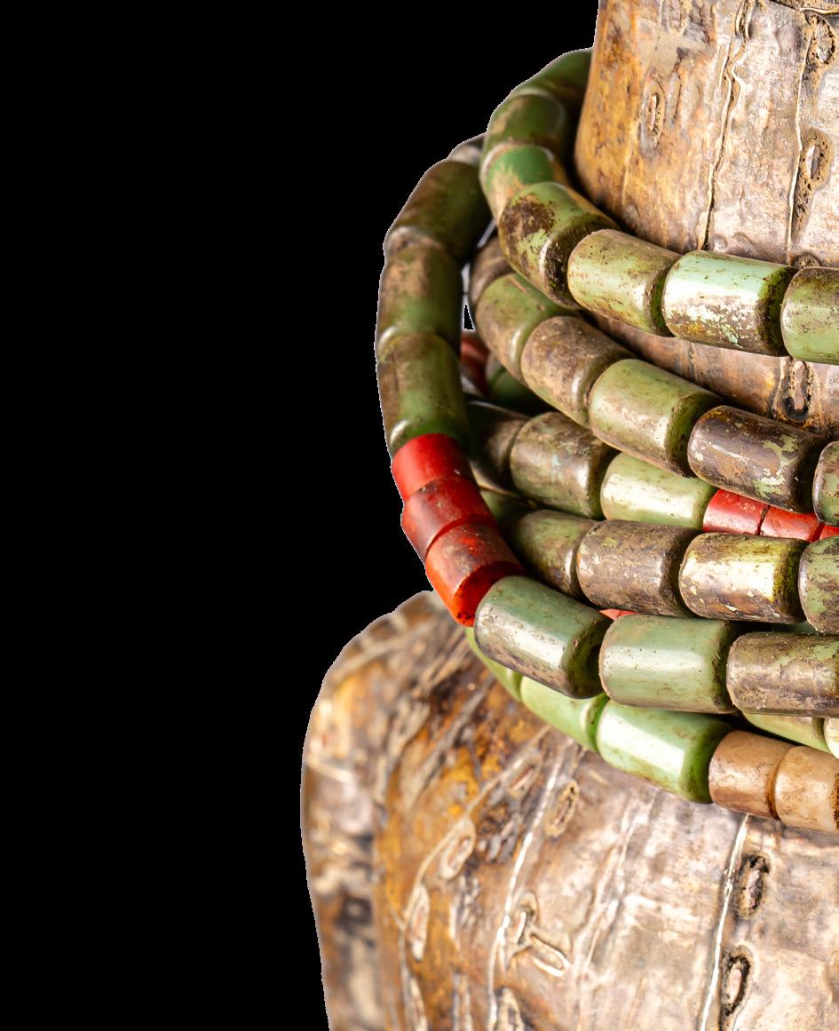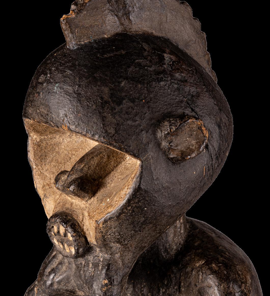 With the Premier exhibition series, we continue to explore the imaginary and visual language of Indigenous cultures, offering readers an immersive journey into a rich universe of art forms. We aim to delve into the intersections of spirituality, identity, and globalisation - universal themes intertwined with the cultural specificities of communities in continuous dialogue with modernity. Kota people from the eastern region of Gabon and parts of the Republic of Congo combine wood and metal - often copper or brass - to create reliquary figures with strong symbolic value. Known as mbulu ngulu, these reliquaries protected and honoured the memory of high-ranking ancestors, securing blessings for the clan. They were central to the rituals of the Bwete cult, moments when crucial decisions for the community were made. These works are now recognised as authentic masterpieces of African art, characterised by unique shapes and stylised faces that conveyed clan identity and continuity. Their aesthetics have influenced numerous 20th-century artists and movements, most notably Cubism. Pablo Picasso, André Derain, Henri Matisse, Constantin Brâncu ș i and many others drew inspiration from the proportions and essential forms of African sculptures, including the Kota reliquaries, to develop new visual languages. Their abstract lines, formal reduction, and iconic energy challenged traditional academic norms. These sculptures continue to captivate and engage, collected and studied by the leading museums and foundations worldwide, bearing witness to a timeless intercultural dialogue.