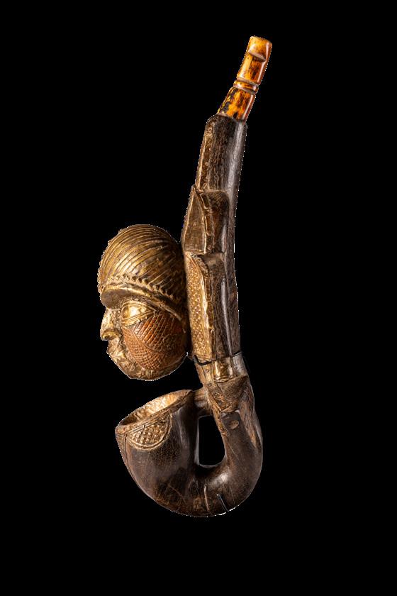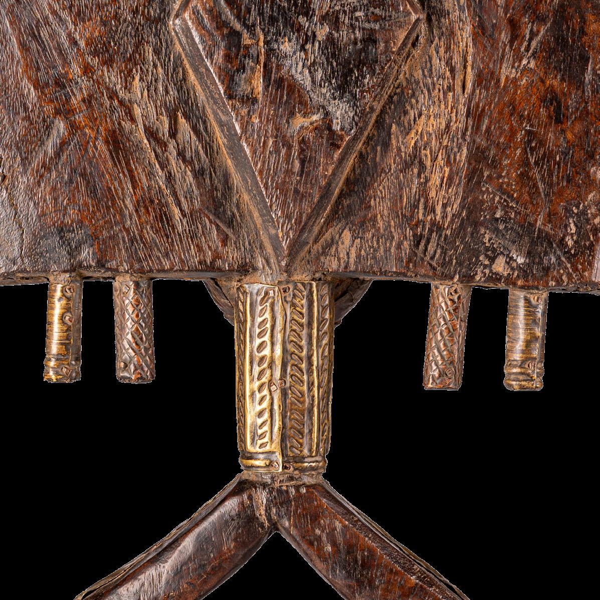 Beyond the well-known reliquary figures, the Kota carved various objects that combined sacrality and utility, illustrating how spiritual significance was woven into everyday life. Ceremonial stools and pipes carried symbolic weight beyond their practical use, often indicating the owner’s status. At the same time, certain protective elements, sometimes incorporated into architectural structures or personal spaces, were designed to ward off harmful forces and maintain spiritual balance.