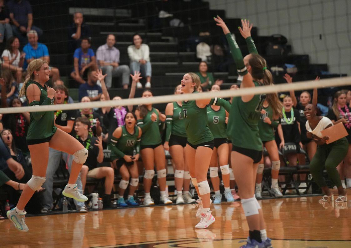 After a rough third set that led to Kingwood getting on the board, senior Kaely Evans said she was determined to not let losing the point bring the energy down. The student section, which was led by senior Van Cradic, remained active in the fourth set, helping lift the team to the win.