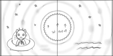 Copito viaja en su nave al Sistema Solar y queda maravillada por la belleza del Sol. A