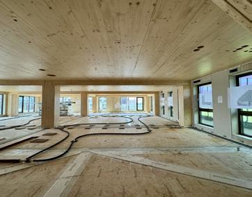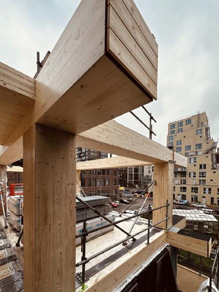 Timber is also lighter than concrete, resulting in reduced foundation loads and more efficient material use. Prefabrication shortened construction time and reduced transport movements on site.