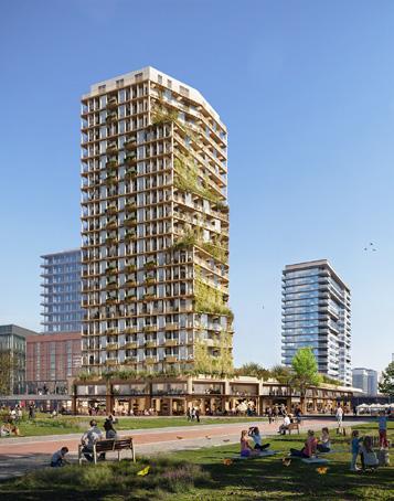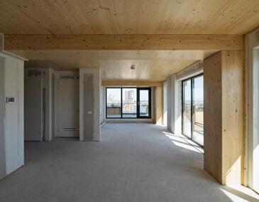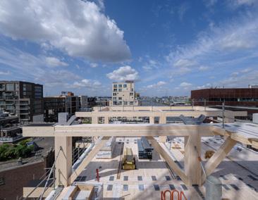 High-rise responds to the demand for urban housing with smart, space-efficient designs. The fully biobased structure — from ground floor to elevator core — is free of concrete and minimizes CO₂ emissions. This sustainable solution builds upon existing urban infrastructure and combines efficiency with high-quality living standards for a growing urban population and a livable city.