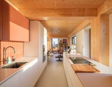 Grotendeels gerealiseerd in hout, met een substantiële reductie van de milieubelasting van de bouw.