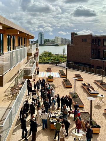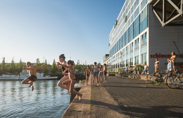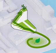 De getrapte opbouw met royale groene terrassen zorgt voor een sterke relatie met de stedelijke context en verwijst tegelijkertijd naar de geschiedenis van de Lloydpier en oosterse rijstvelden. Het groen is niet toegevoegd als laag, maar integraal onderdeel van het gebouw en draagt bij aan biodiversiteit, leefkwaliteit en het stedelijk klimaat.