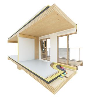 → Demontabele houtconstructie met droge vloersystemen