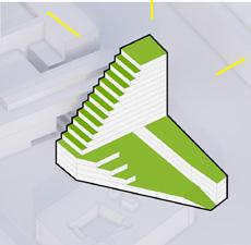 + Een bouwvolume dat zich voegt naar zijn omgeving, een collectief leefdek introduceert op +1 en bijdraagt aan ruimtelijke kwaliteit, wooncomfort en stedelijke samenhang.