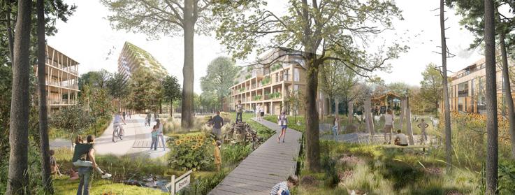 Eco Village biedt een vernieuwende aanpak voor gebiedsontwikkeling, waarbij bestaande ecologische structuren en culturele waarden worden versterkt. Deze duurzame woonwijk is volledig Paris Proof ontworpen met klimaatadaptieve, natuurinclusieve openbare ruimten en circulaire, biobased bouwprincipes. Lichte funderingen behouden de bodemstructuur, materialen worden lokaal verkregen, en het gemengde programma biedt een diverse, toekomstbestendige leefomgeving.